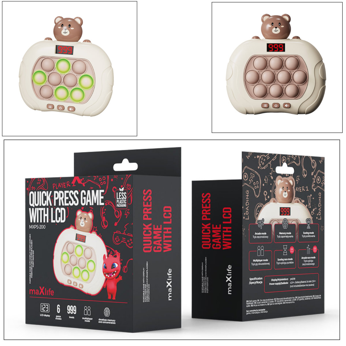 Joc Educational Portabil Maxlife MXPS-200 Pop It cu 6 Moduri, Display LCD si Design Ursulet, pentru Dezvoltarea Memoriei si a Coordonarii