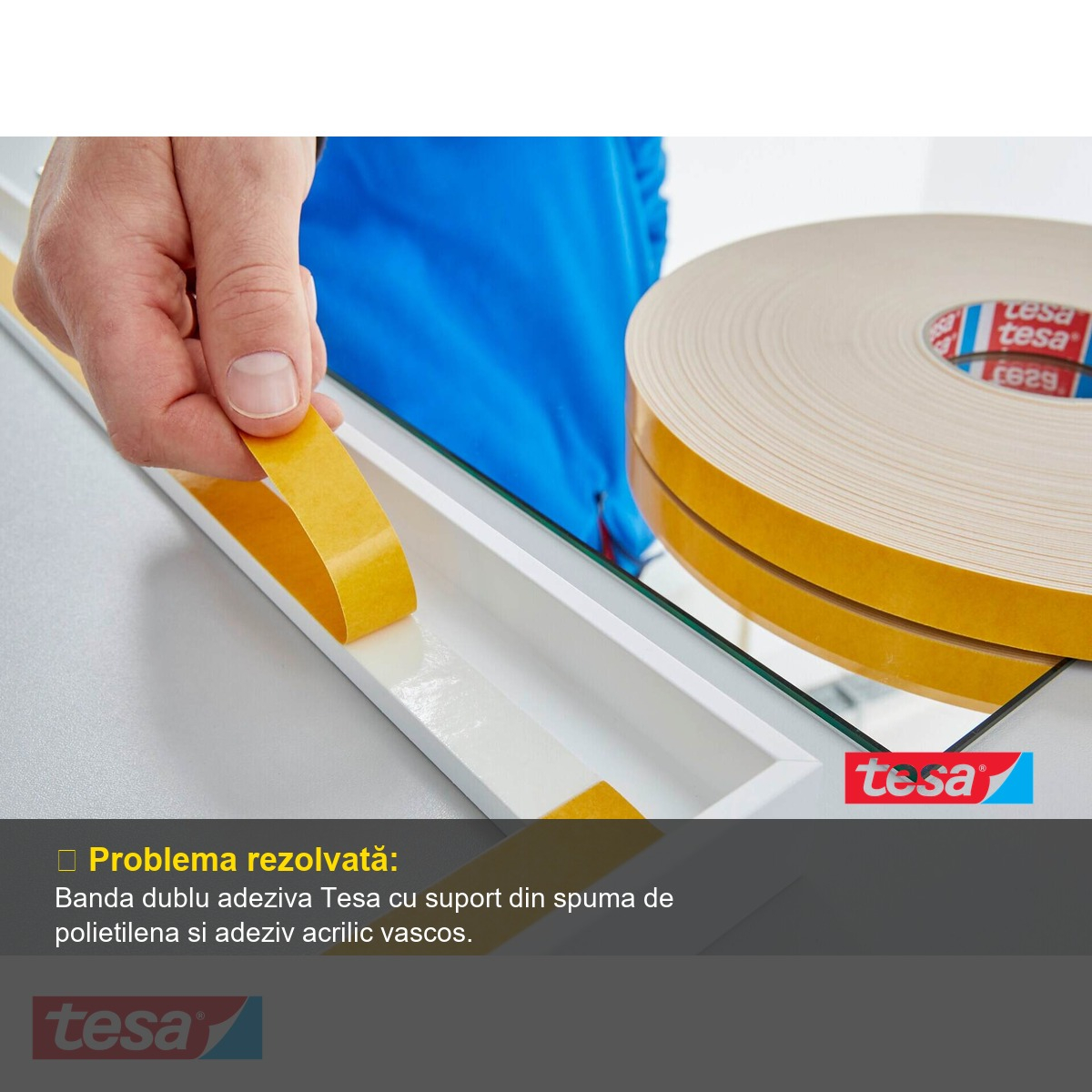 Banda dublu adeziva buretata Tesa - solutia profesionala pentru lipire durabila