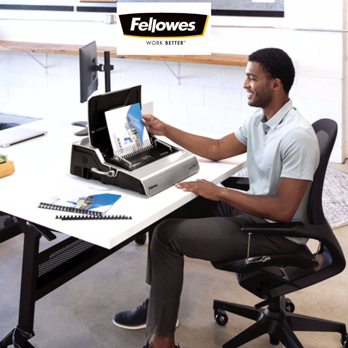 Platforma de indosariere poate fi indepartata, permitand unui utilizator sa perforeze electric in timp ce altul leaga inelele. Se poate lucra simultan, dubland productivitatea.