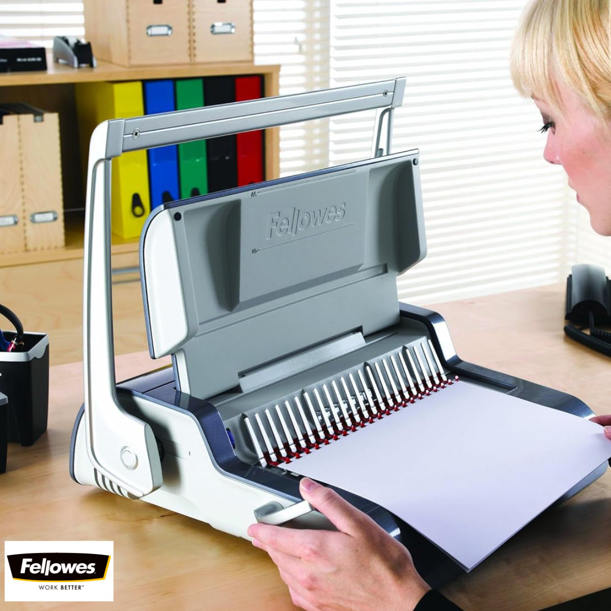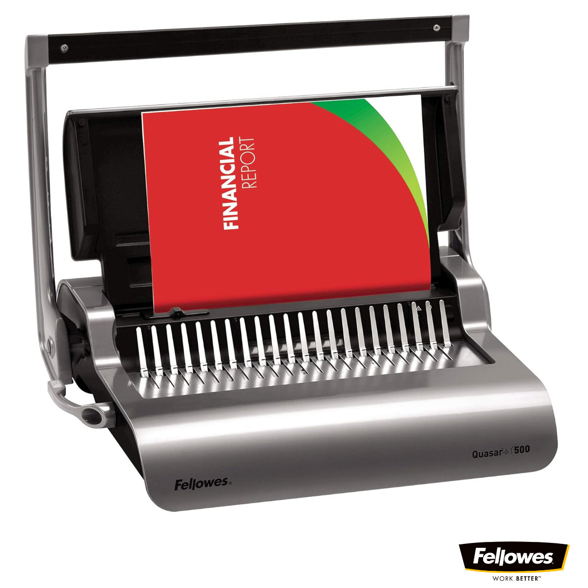 Aparatul manual Quasar 500 de la Fellowes este raspunsul pentru birourile cu activitate intensa, departamentele de arhiva, centrele de documentare si tipografiile mici care doresc sa lege pana la 500 de coli intr-un singur volum, cu o perforare usoara a 25 de foi simultan.