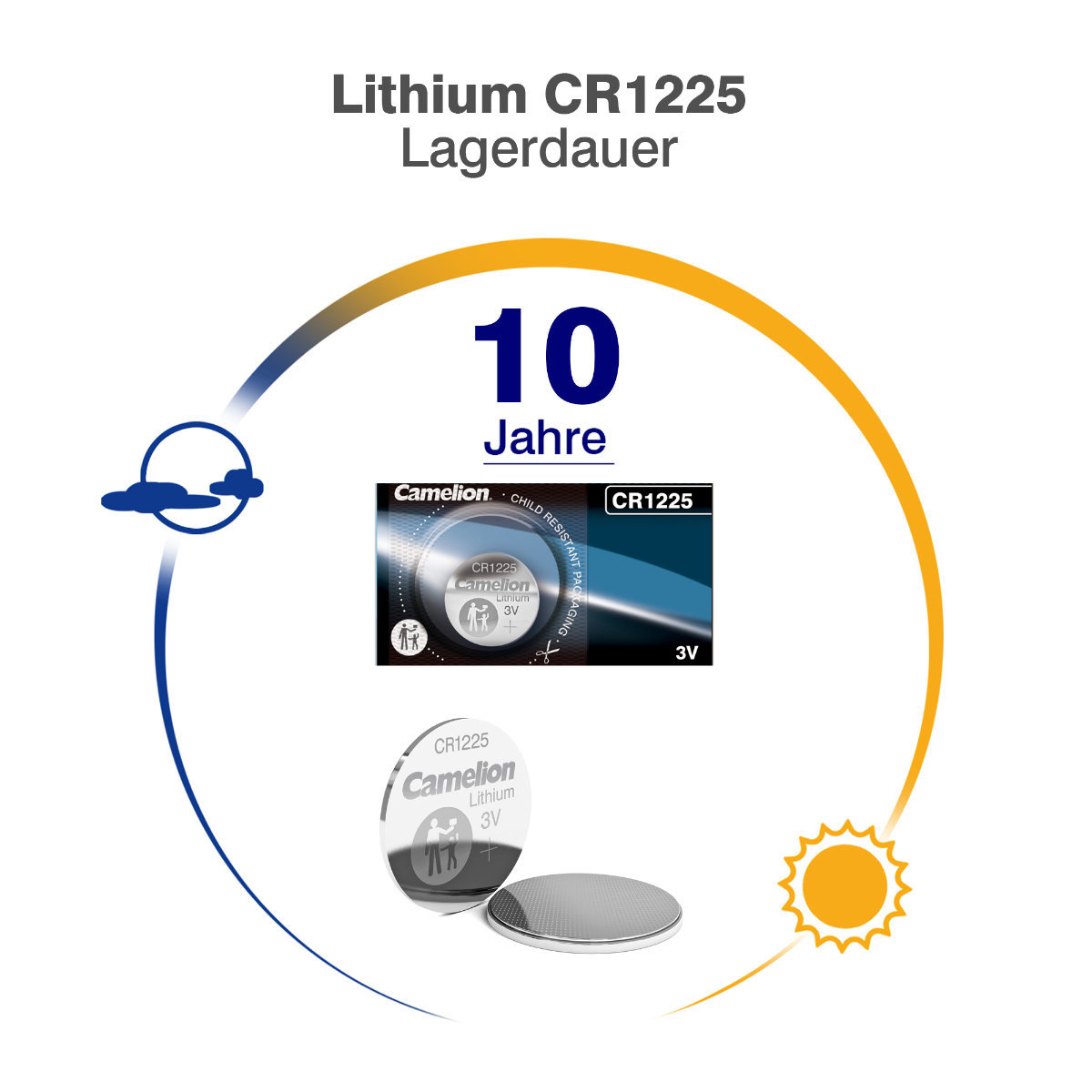 Durata exacta depinde de consumul dispozitivului. Datorita tehnologiei litiu si a stabilitatii tensiunii, va dura mult mai mult decat o baterie standard in dispozitive cu consum redus (ex.: o cheie de masina) sau chiar in cele cu consum mediu (ex.: un cantar folosit zilnic).