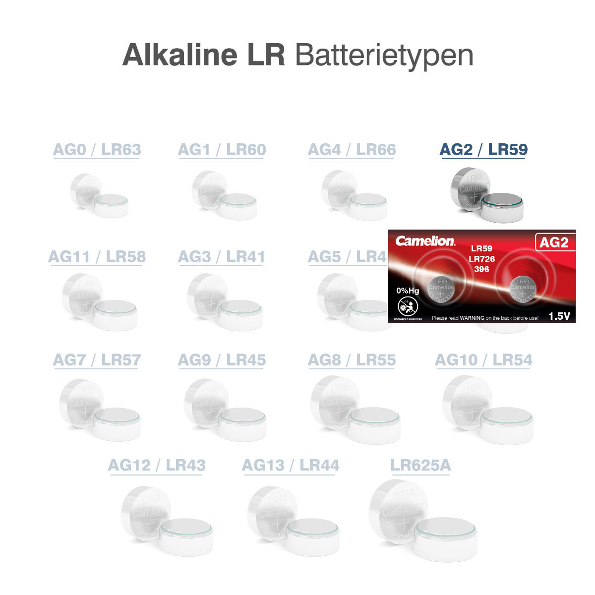 Alege potrivirea perfecta dimensionala cu Setul de 2 baterii alcaline Camelion AG2/LR726!