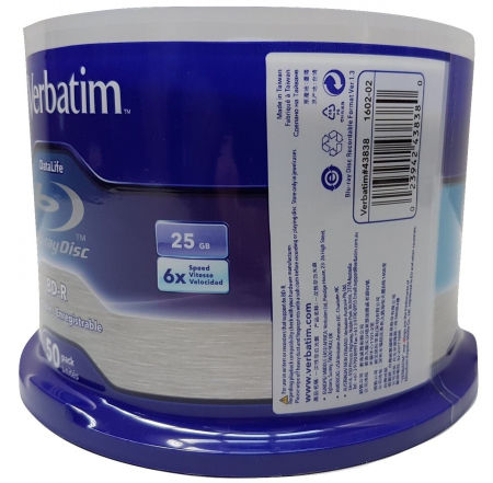 BD-R Single Layer Verbatim Datalife 25GB 6X spindle 50 buc.