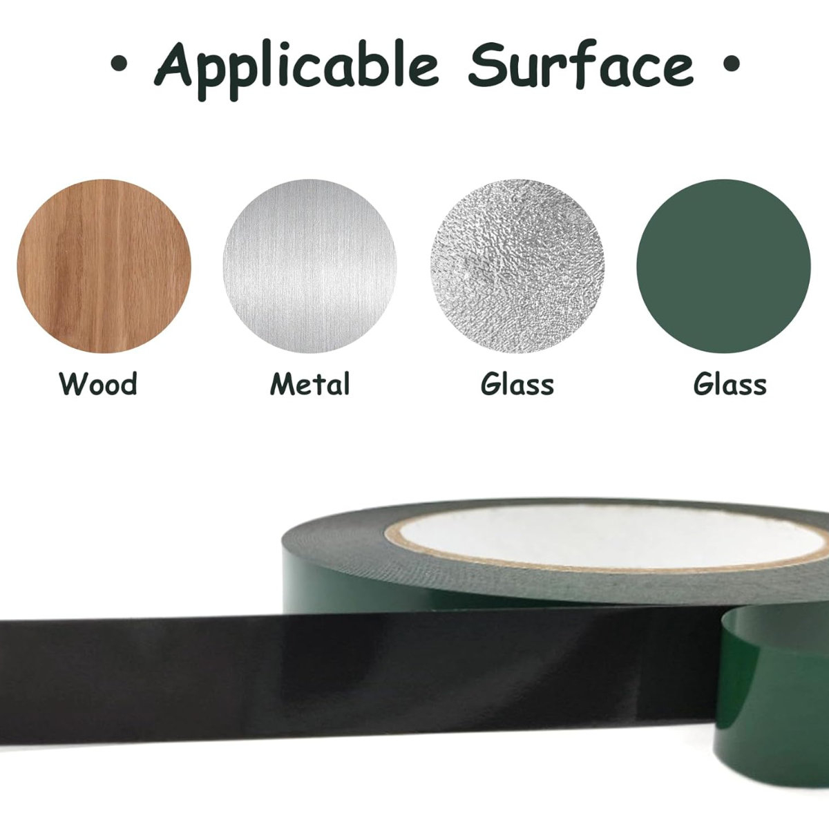 Banda adera excelent pe o gama larga de suprafete netede si curate: metal, sticla, plastic, lemn, vopsea, faianta, oglinzi si multe altele.