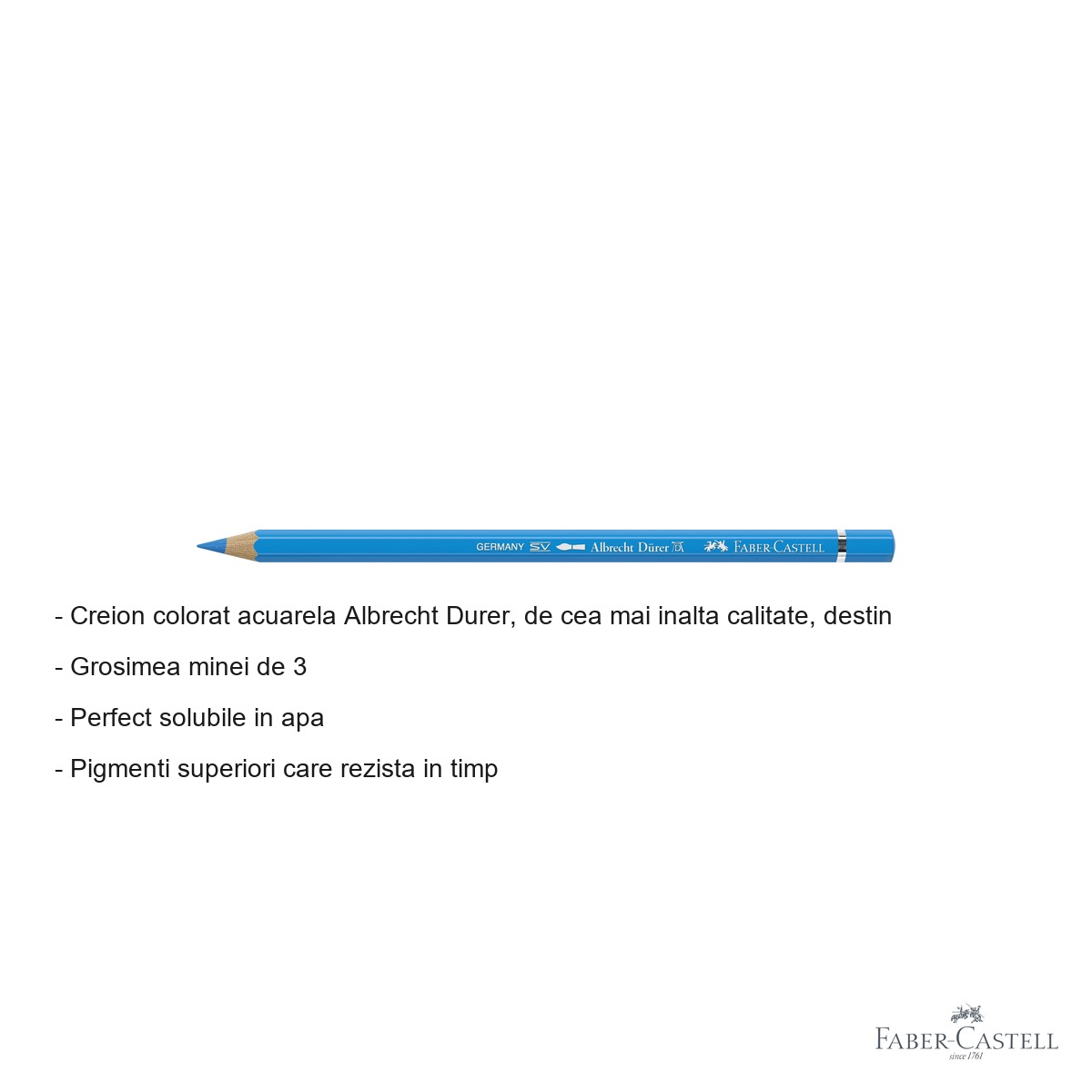 Creion colorat acuarela Faber-Castell Albrecht Durer 152 albastru mediu, mina 3.8mm, pentru artisti