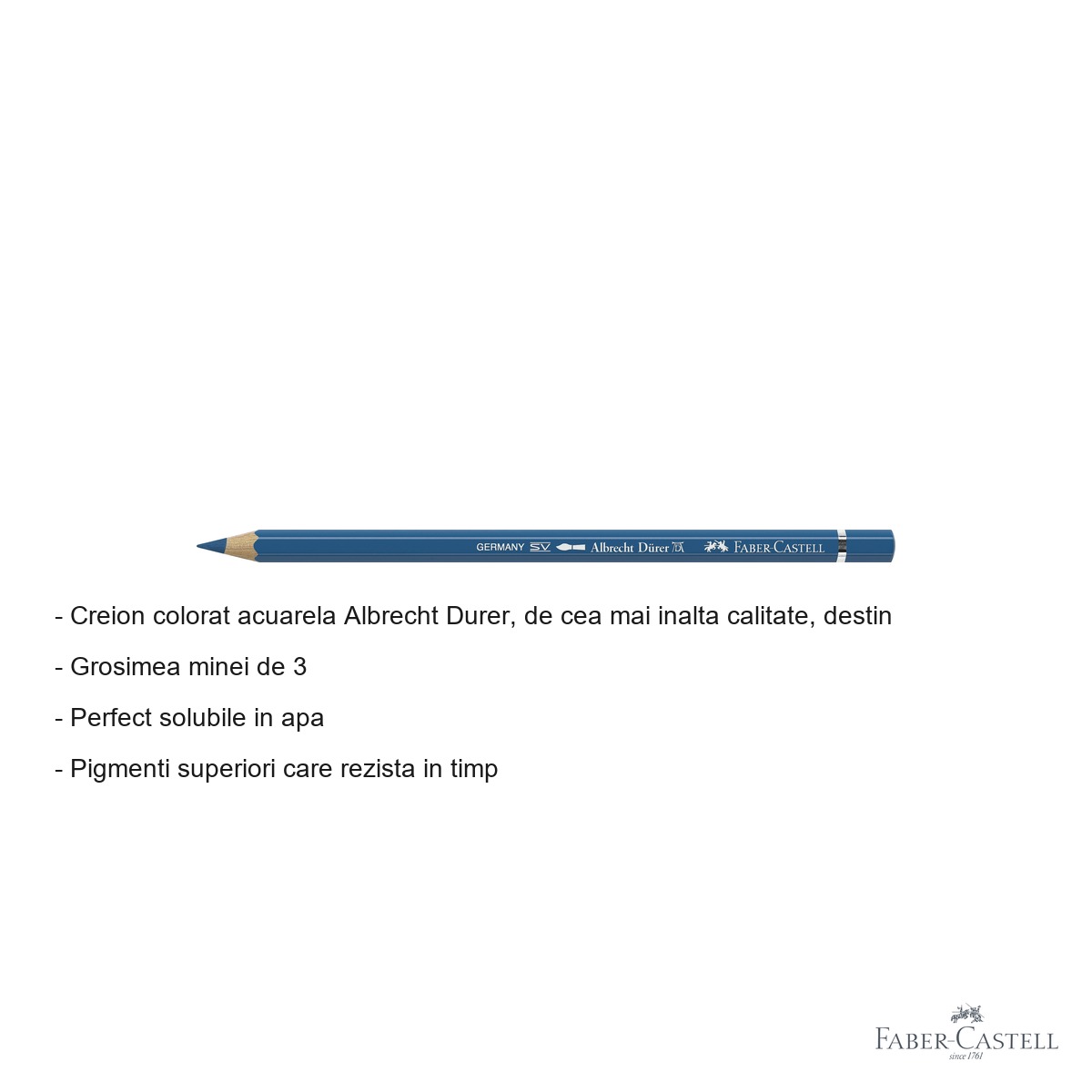 Creion acuarela profesional Albrecht Durer cu mina groasa 3.8mm, perfect solubil in apa. Pigmenti superiori cu rezistenta maxima la lumina, ideal pentru tehnici mixte de desen si pictura acuarela.