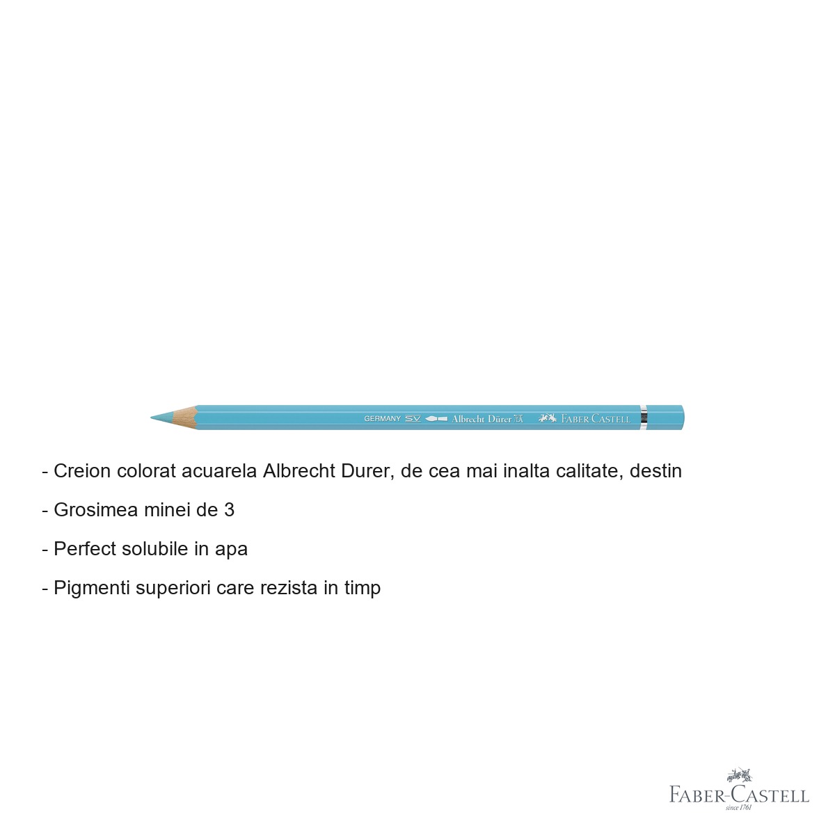 Pentru artistii care cauta versatilitate maxima in exprimarea creativa, creionul colorat acuarela Albrecht Durer reprezinta instrumentul perfect pentru combinarea tehnicilor de desen si pictura. Nuanta turcoaz cobalt deschis 154 ofera o culoare vibranta si luminoasa, ideala pentru peisaje marine, ceruri senine sau detalii decorative in compozitii complexe.