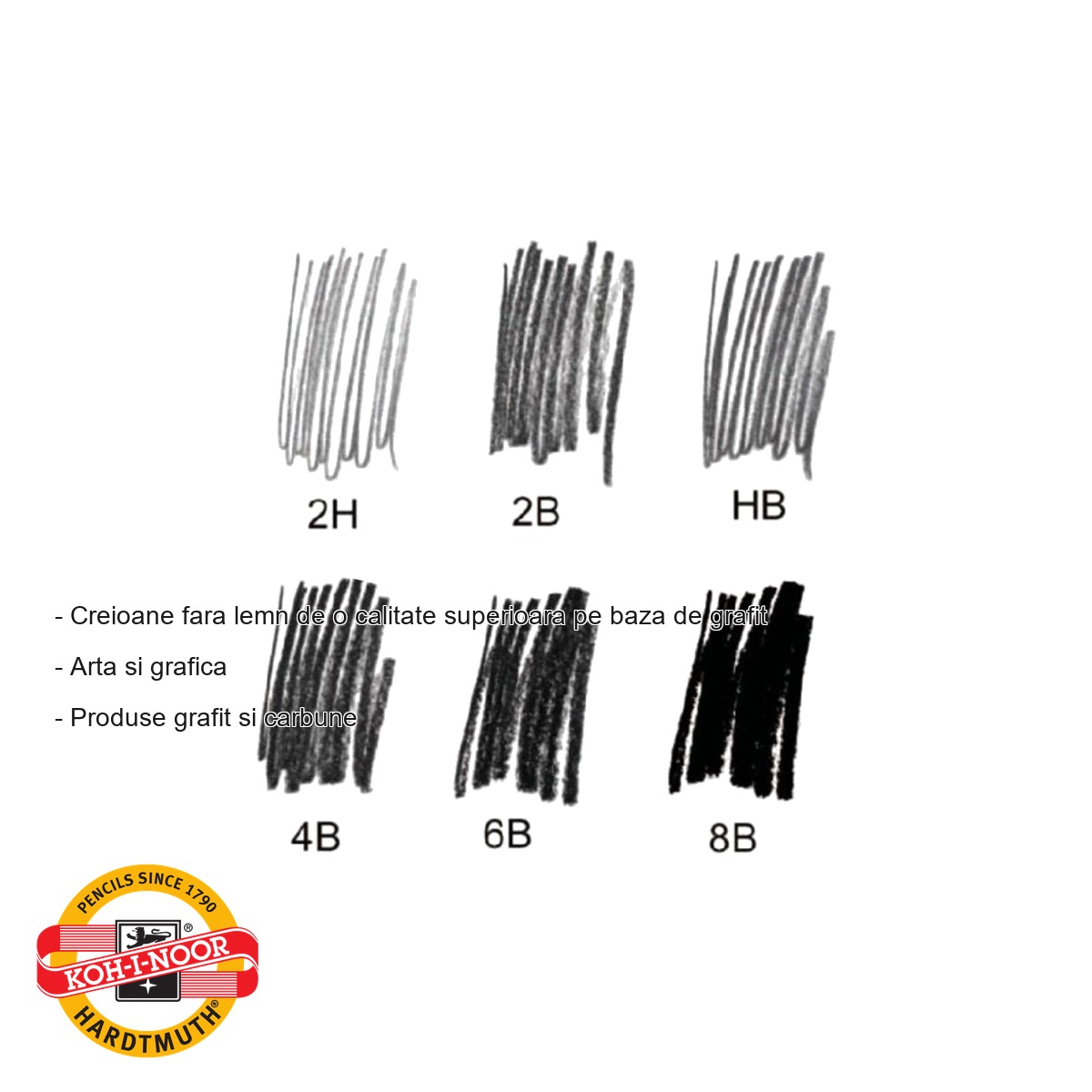 - Notatie duritate: B = Black (moale), H = Hard (tare), HB = HardBlack (mijloc), F = Fine (mijloc fin)
