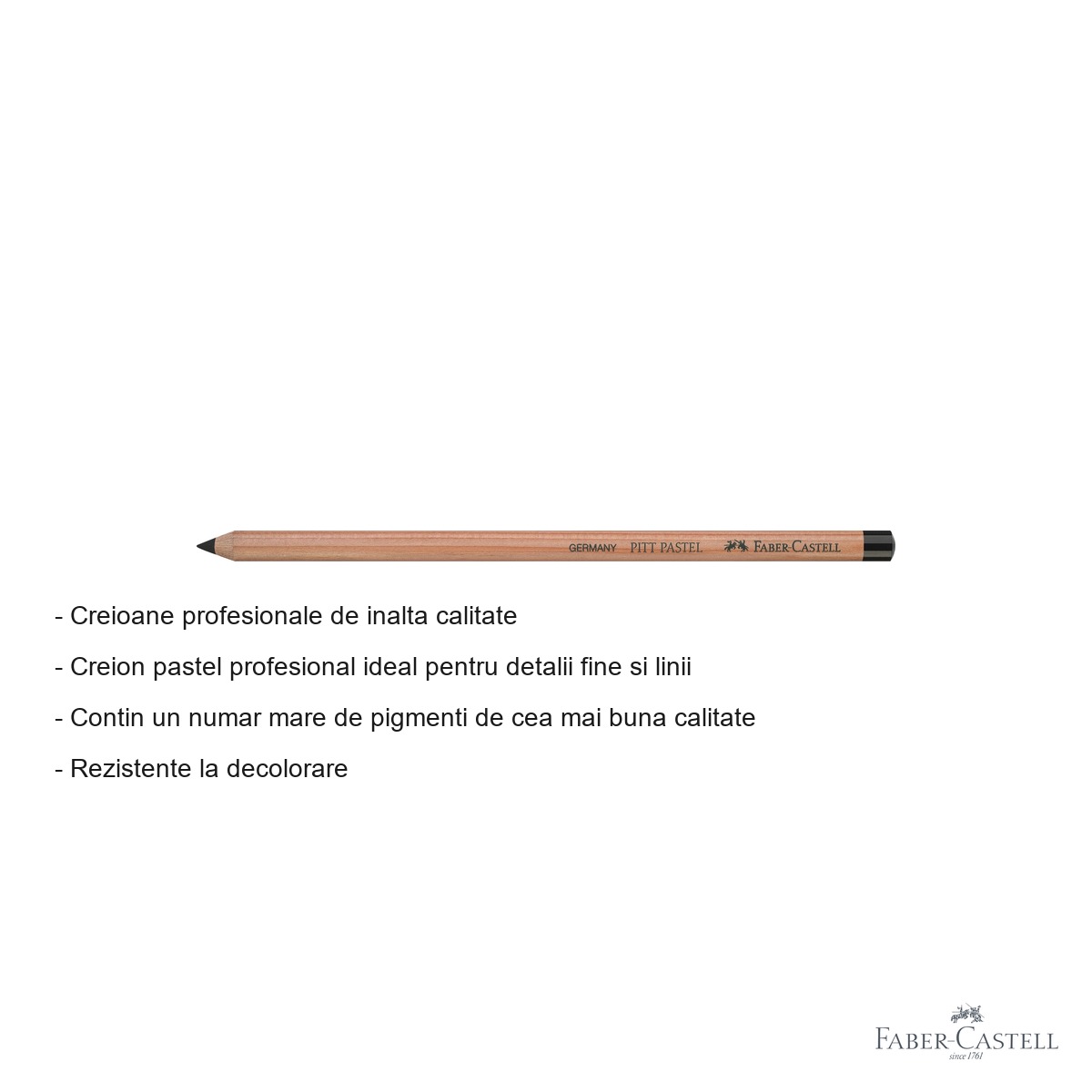 Creionul pastel Pitt Negru de la Faber-Castell se remarca in primul rand prin calitatea superioara a minei sale. Formula fara ceara asigura un depus de pigment pur pe hartie, ceea ce inseamna culori mai saturate, posibilitate de estompare facila si o aderenta excelenta pe suprafata de lucru. Spre deosebire de creioanele cerate obisnuite, aceasta mina permite stratificarea si mixarea tehnicilor pastel cu mai multa libertate creativa.
