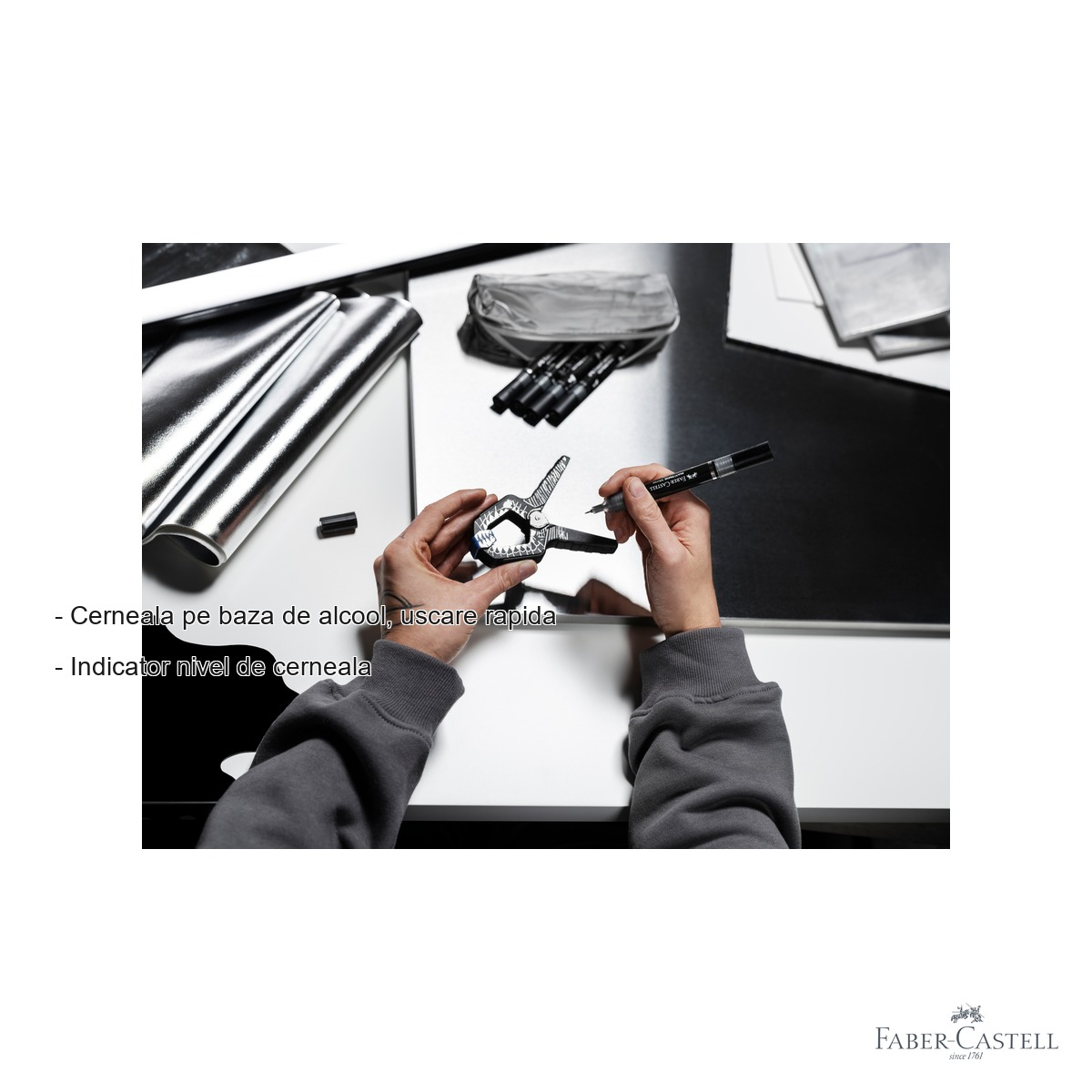 Efectul oglinda al culorii 551 confera lucrarilor tale un aspect modern, atragator si profesional, ideal pentru proiecte care cer un element de distinctie vizuala. Brandul Faber-Castell, cu traditia sa indelungata in domeniul instrumentelor de scris si desen, garanteaza calitate constanta si materiale de incredere.