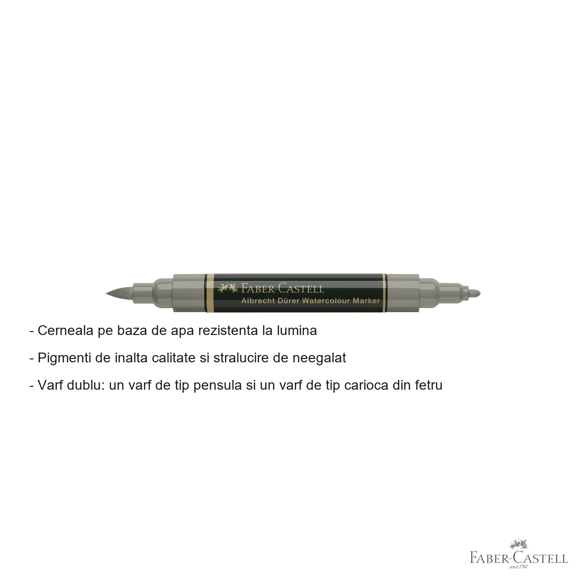 Marker-ul acuarela Albrecht Durer Faber-Castell aduce o serie de avantaje clare fata de instrumentele conventionale. In primul rand, varful dublu iti ofera doua instrumente intr-unul singur: varful pensula flexibil pentru tuse largi, degradeuri si zone de culoare, si varful din fetru pentru linii precise, contururi si detalii grafice. Nu mai este nevoie sa schimbi instrumentul in mijlocul unei lucrari - tot ce ai nevoie se afla la cele doua capete ale aceluiasi marker.