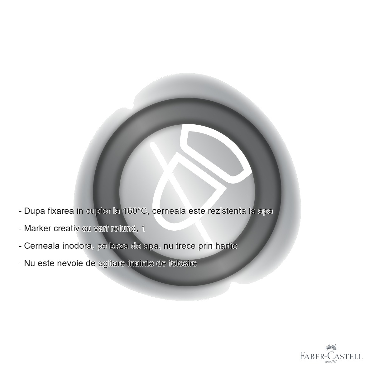 Markerul Faber-Castell Goldfaber Argintiu 551 se remarca printr-o serie de avantaje clare fata de produsele similare de pe piata. In primul rand, cerneala pe baza de apa este prietenoasa cu utilizatorul si cu mediul inconjurator, eliminand mirosurile neplacute specifice markerelor pe baza de solvent. Aceasta caracteristica il face ideal pentru utilizarea in spatii inchise, ateliere, sali de clasa sau acasa, fara a fi necesara o ventilatie speciala.