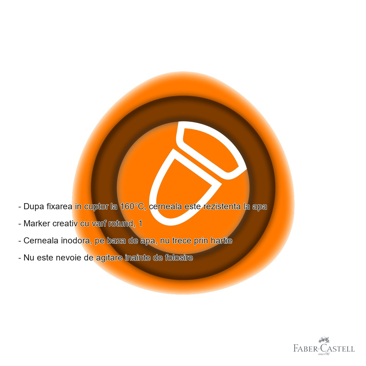 Dupa fixarea in cuptor la 160 de grade Celsius, cerneala devine rezistenta la apa, transformand marker-ul intr-un instrument potrivit si pentru suprafete care vor fi expuse la umiditate sau spalare. Aceasta caracteristica extinde considerabil aria de aplicare a produsului, de la simpla scriere pana la decoratiuni durabile pe ceramica, sticla sau metal.