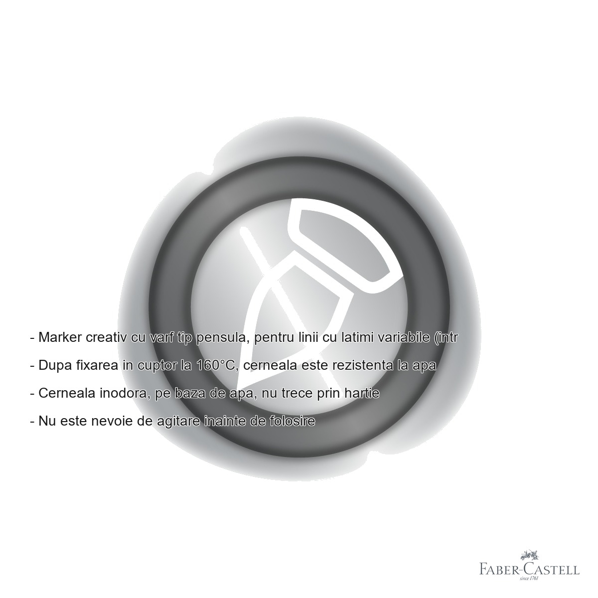 Fie ca esti artist, designer, meserias sau pasionat de proiecte creative DIY, ai nevoie de un instrument de scris care sa iti ofere flexibilitate, precizie si rezultate durabile pe orice suprafata. Markerul creativ Faber-Castell Goldfaber Argintiu 551 este exact instrumentul de care ai nevoie. Cu varful sau tip pensula si cerneala argintie de inalta calitate, acest marker iti permite sa creezi linii subtiri sau groase, detalii fine sau trasaturi largi, totul cu un singur instrument. Potrivit pentru hartie, carton, sticla, plastic, metal si piatra, markerul Goldfaber se adapteaza la orice proiect creativ sau profesional.