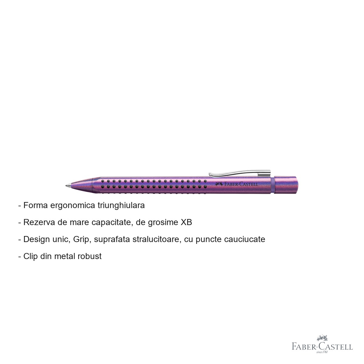 Daca iti doresti un instrument de scris care imbina stilul cu functionalitatea, Pixul cu mecanism Faber-Castell Grip 2011 Glam Violet este alegerea ideala. Fie ca esti student, profesionist sau pur si simplu apreciezi un pix de calitate, acest model iti ofera confort real in timpul scrierii, datorita formei ergonomice si materialelor atent selectionate. Suprafata sa stralucitoare si designul rafinat il fac totodata un accesoriu de birou elegant, care atrage privirea.