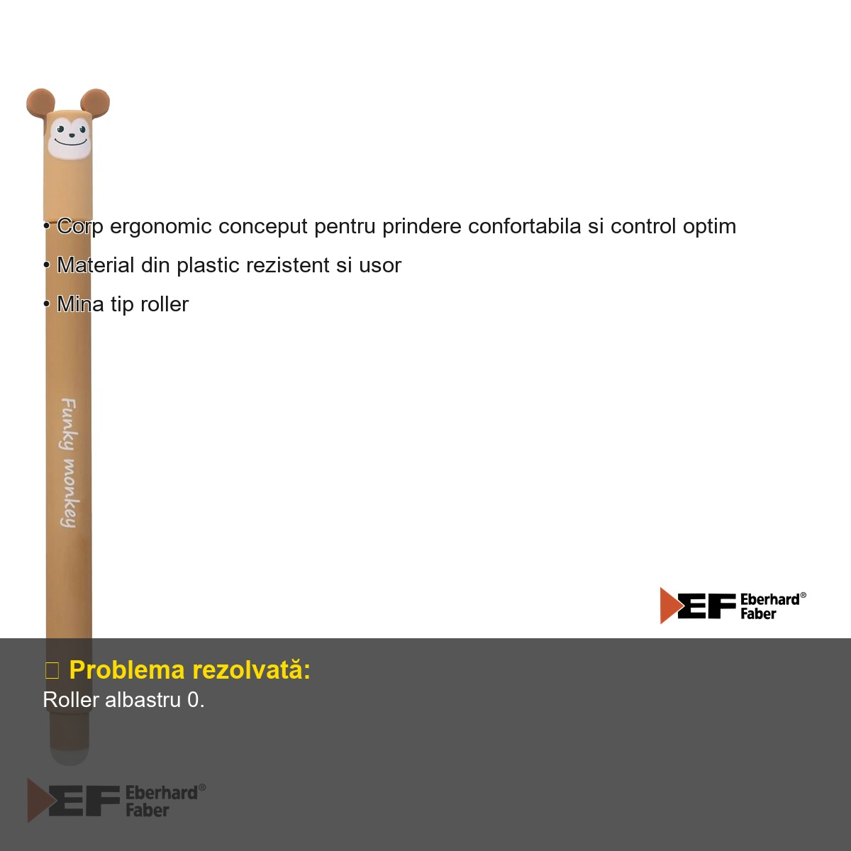 Roller erasable 0.7 mm albastru Eberhard Faber, cerneala termosensibila, model maimuta, pentru scoala