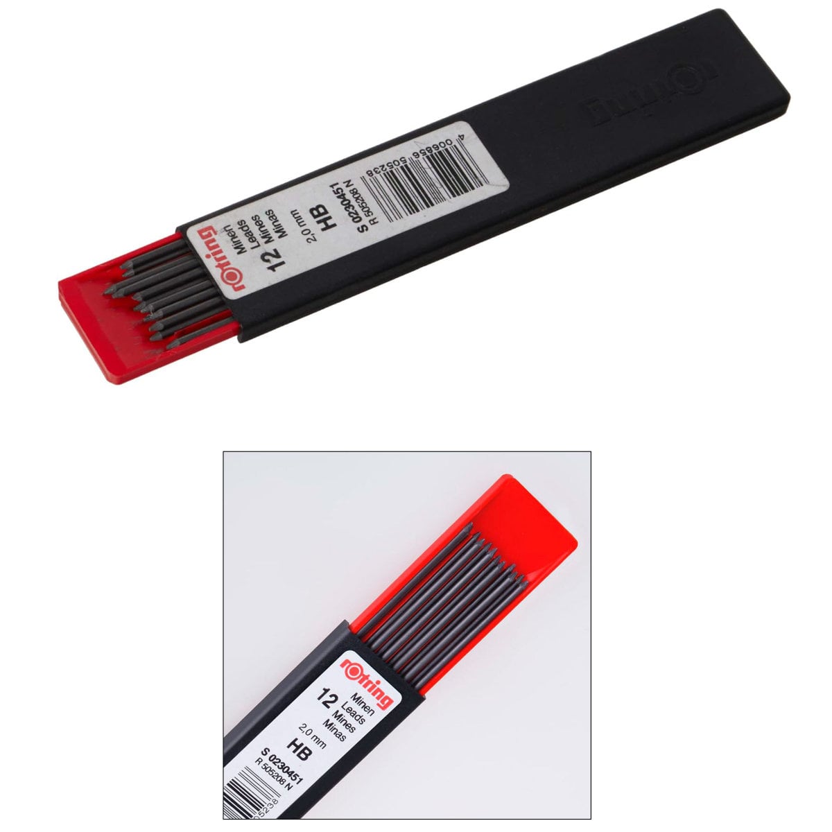 Set 10 mine creion 2.0mm HB cu Rezistenta Exceptionala la Rupere, pentru Scriere si Marcaje Vizibile, in Etui Protector Rotring