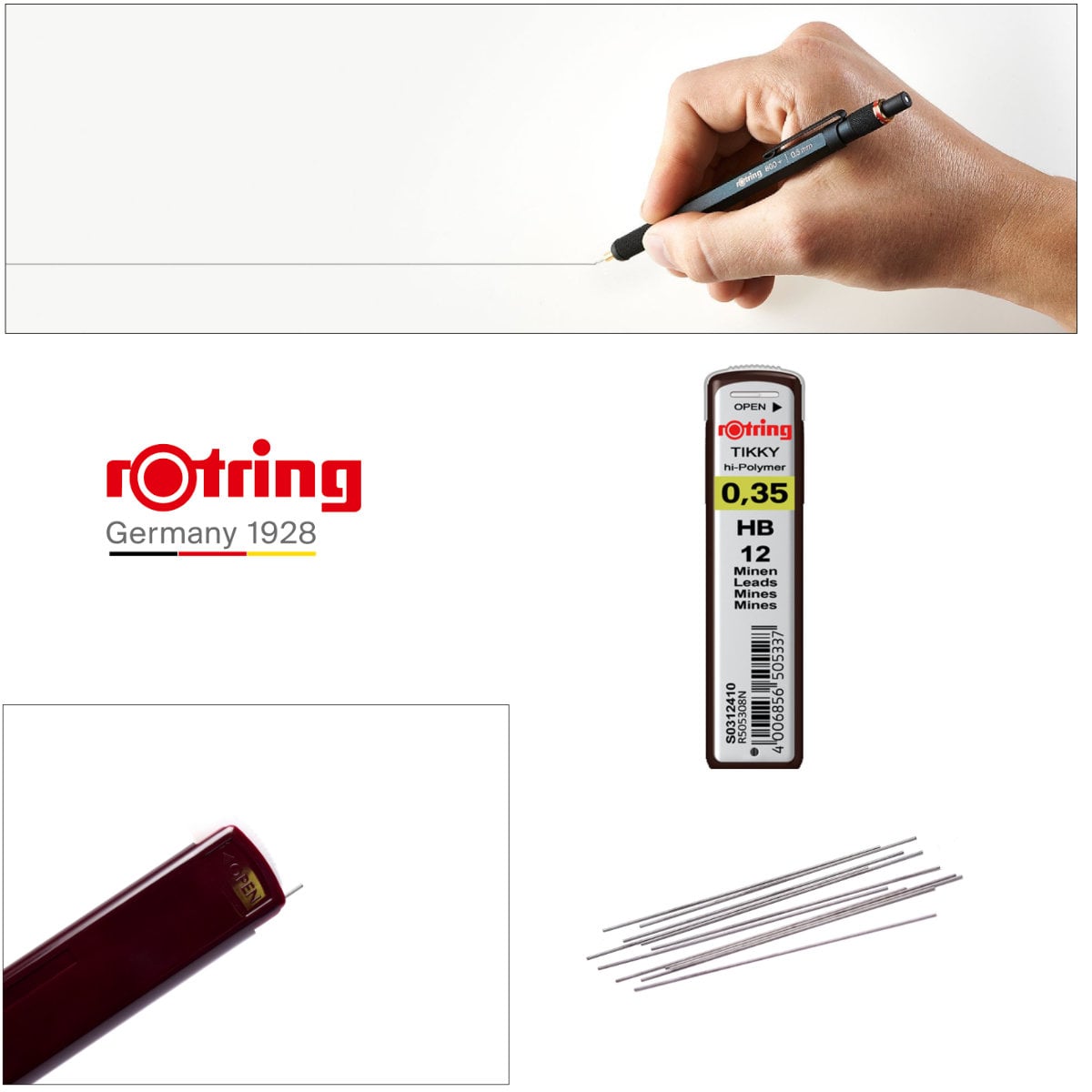 Set 12 mine creion 0.35mm HB cu Rezistenta Extra la Rupere, pentru Desen Tehnic Extrem de Precizie, in Etui Protector Rotring