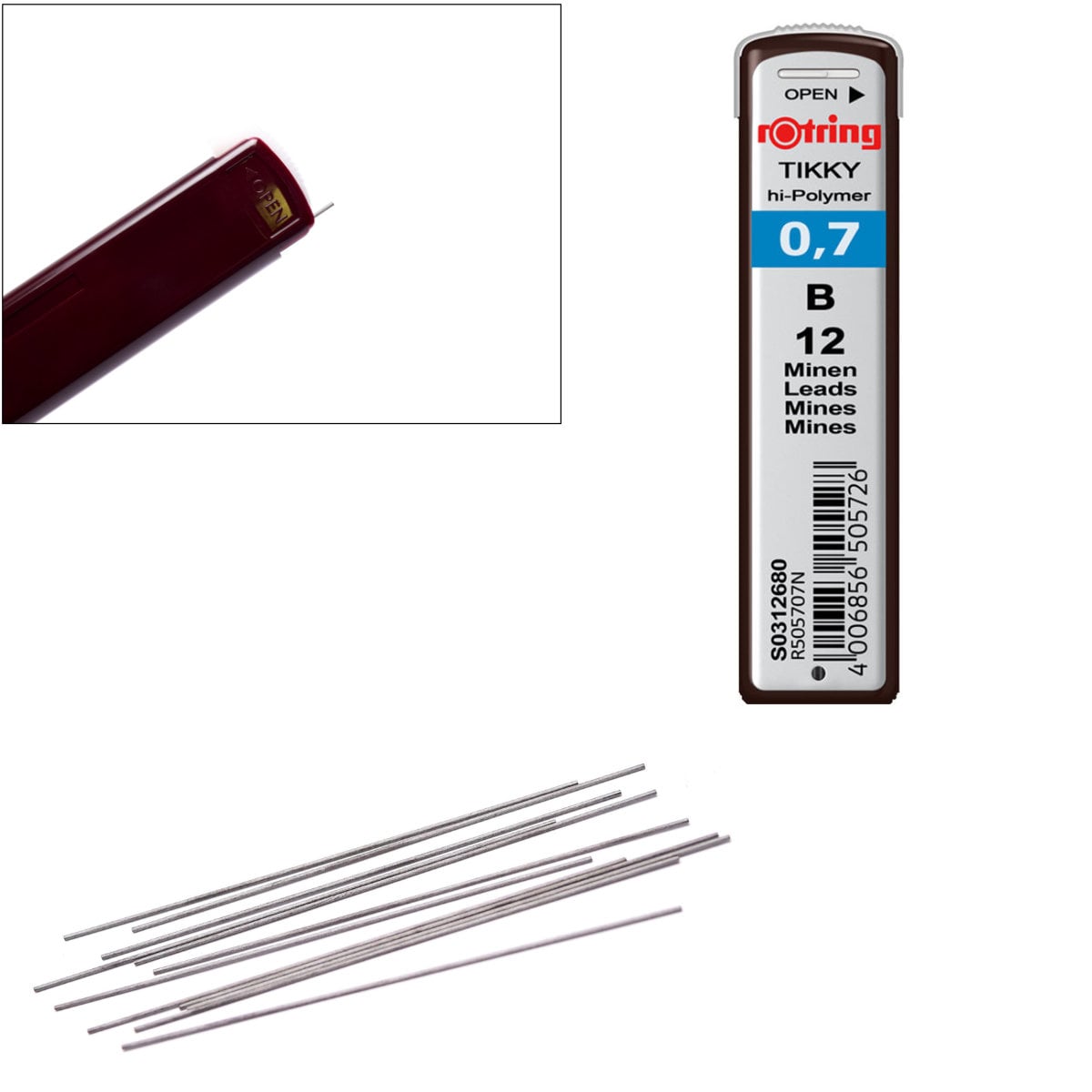 Set 12 mine creion 0.7mm B cu Rezistenta Extra la Rupere, pentru Scriere Confortabila si Desen Versatil, in Etui Protector Rotring