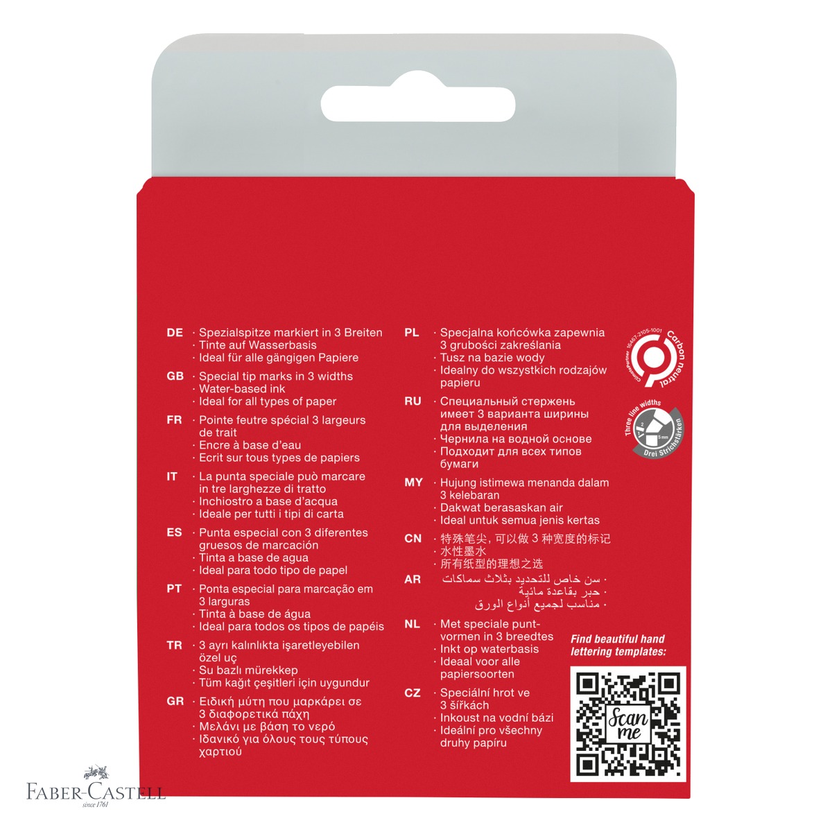 Unul dintre cele mai importante avantaje ale acestui set este versatilitatea varfului tesit. Spre deosebire de textmarkerele clasice cu un singur varf, varful tesit al acestor markere Faber-Castell iti permite sa alegi intre 3 grosimi de linie doar prin schimbarea unghiului de scriere: 1 mm pentru detalii fine, 2 mm pentru evidentiere standard si 5 mm pentru linii late si vizibile. Astfel, un singur marker inlocuieste practic trei instrumente diferite.