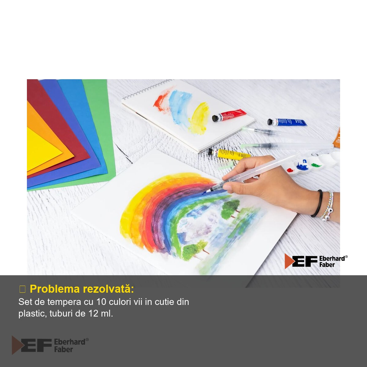 Set tempera Eberhard Faber, 10 culori intense, tuburi de 12 ml, pentru activitati creative scolare si acasa