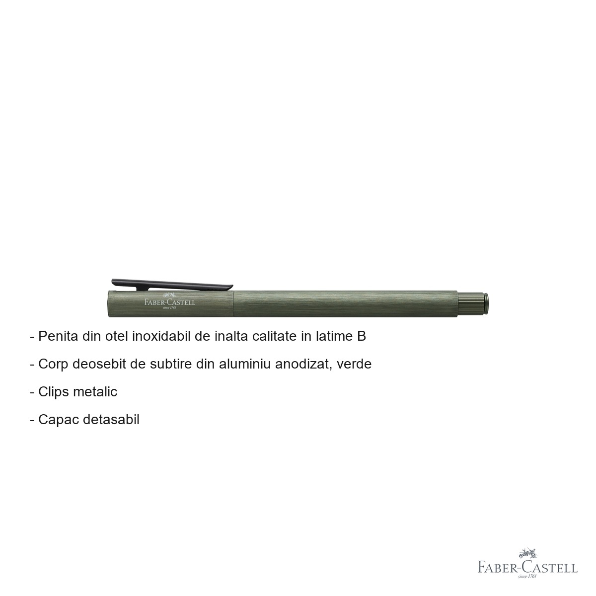 Stilou Faber-Castell Neo Slim din aluminiu anodizat verde, penita B din otel inoxidabil, pentru profesionisti