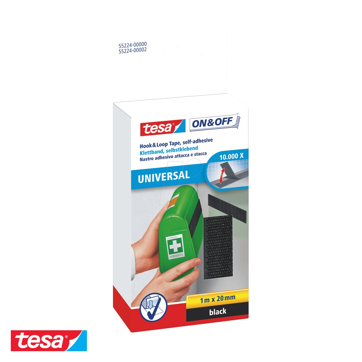 Banda adeziva cu arici Tesa On & Off negra, dimensiune 1m x 20mm. Ideala pentru fixarea si organizarea obiectelor usoare din materiale textile. Se poate detasa si reatasa repetat, oferind flexibilitate maxima.