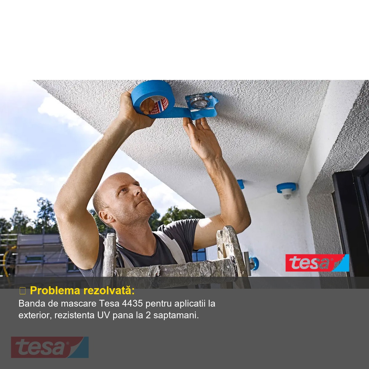 Atunci cand realizezi lucrari de vopsire, lacuire sau finisare la exterior, protectia suprafetelor adiacente este esentiala pentru un rezultat curat si profesional. Banda adeziva de mascare Tesa 4435 a fost special conceputa pentru utilizare la exterior, oferind o aderenta excelenta si o rezistenta superioara la razele UV. Datorita formulei speciale a adezivului si a materialului de sustinere extrem de maleabil, aceasta banda se mulaza perfect pe orice tip de suprafata, asigurand o linie neta si precisa, fara scurgeri de vopsea. Indiferent daca esti un profesionist in constructii sau un bricoleur pasionat, banda Tesa 4435 iti ofera siguranta unui rezultat impecabil.