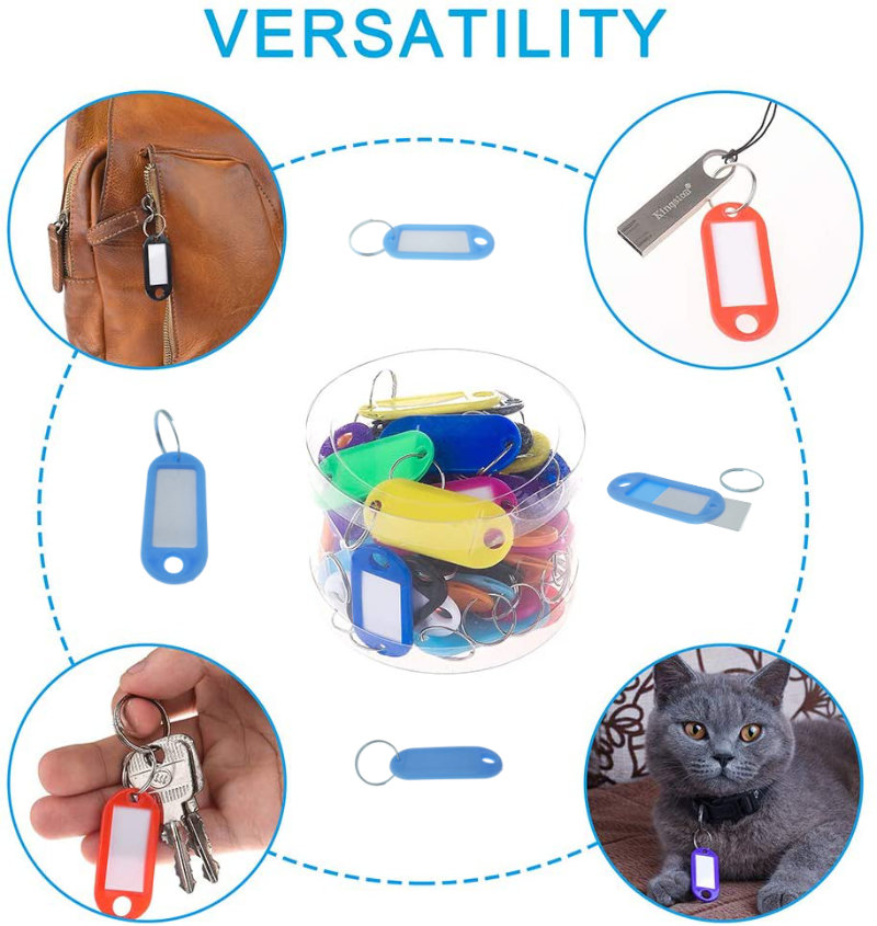 Pentru organizarea si identificarea cheilor, bagajelor, genti, rucsaci, animale de companie dar si o obiectelor mici prevazute cu orificiu pentru agatare cum sunt memoriile USB Flash Drive, conectori pentru smartphone, carduri de acces interfon si diverse alte obiecte care permit atasare etichetei si necesita organizare si identificare usoara.
