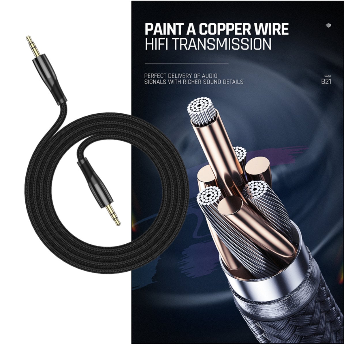 Cablu Audio Jack 3.5mm Tata-Tata, Jellico B21, Cu Conectori Auriti si Impletitura Rezistenta, pentru Transfer Audio Hi-Fi la Boxe, Casti, Masina si Dispozitive Mobile
