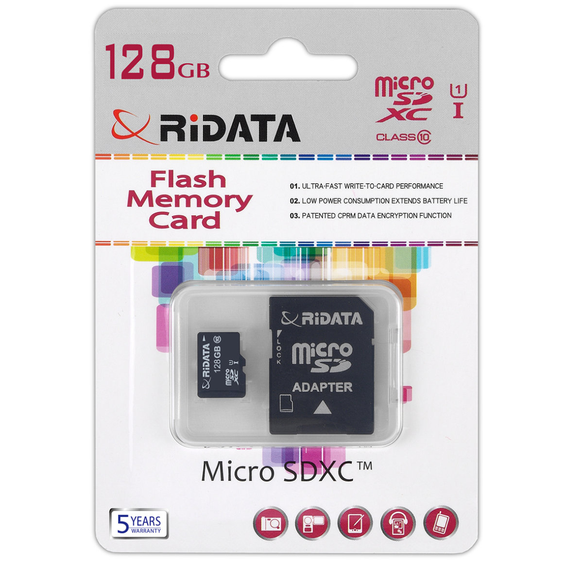 Card Memorie microSDXC 128GB RIDATA, Clasa 10, UHS-I U1 A1, Adaptor SD Inclus, pentru Telefoane, Camera Foto, Nintendo Switch
