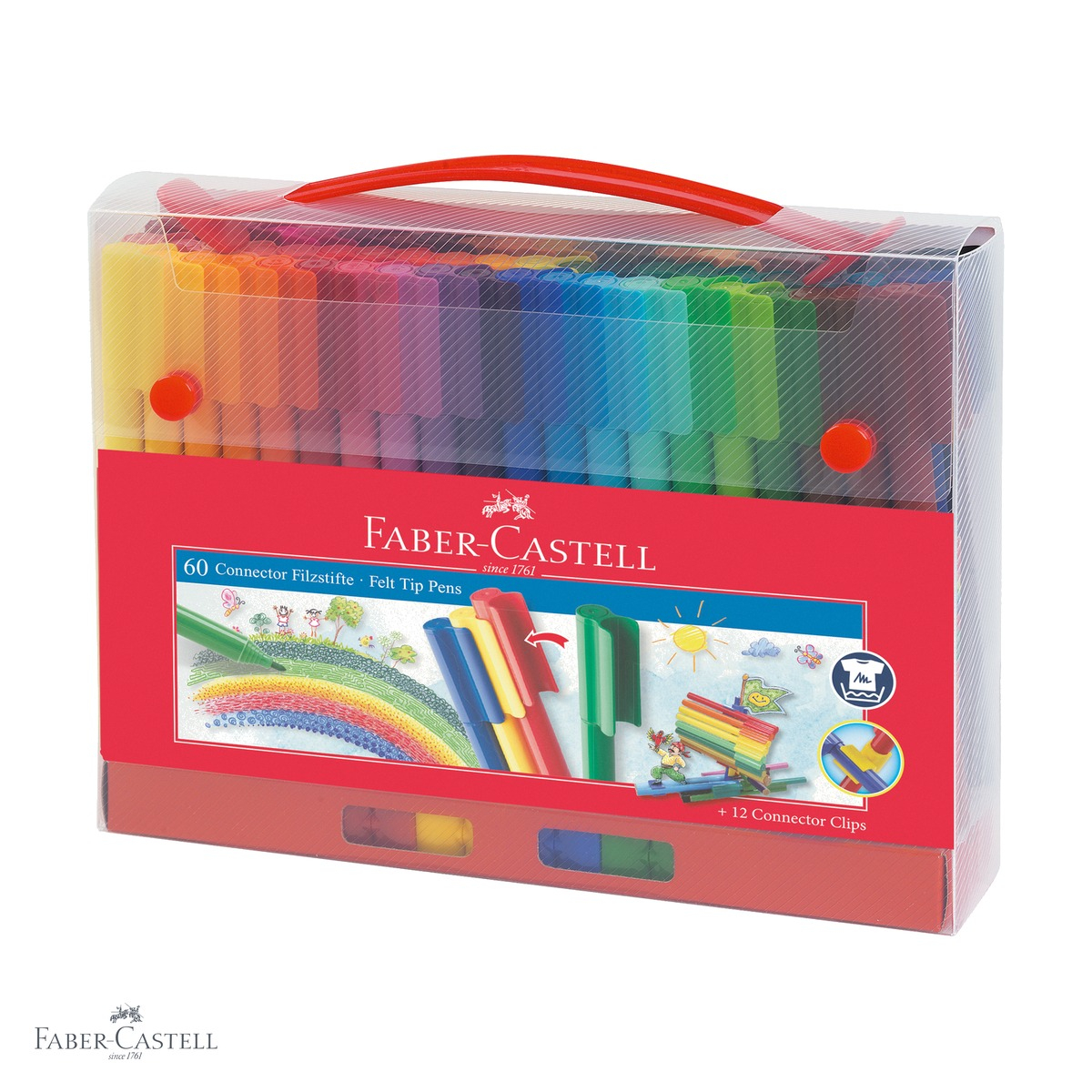 Setul Faber-Castell Connector 60 culori se remarca prin mai multe avantaje clare fata de produsele similare de pe piata. In primul rand, cerneala pe baza de apa si coloranti alimentari asigura siguranta copilului in timpul utilizarii, reducand riscurile in cazul contactului accidental cu pielea sau cu textilele. Culorile intense si luminoase ofera rezultate vizuale deosebite, stimuland creativitatea si satisfactia micilor artisti. Sistemul inovativ de clipuri conectoare transforma cariocile dintr-un simplu instrument de colorat intr-un joc creativ, prin care copiii pot construi figurine si structuri distractive. Ambalajul tip geanta cadou este nu doar atractiv vizual, ci si practic, fiind rezistent si usor de transportat, ideal pentru deplasari sau vacante.