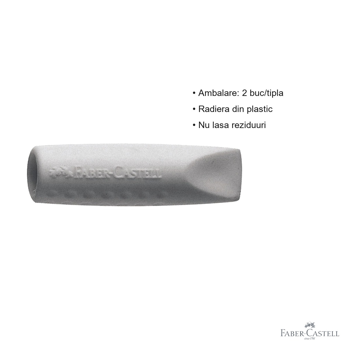 Atunci cand lucrezi cu creioane grafit, fie ca esti elev, student, arhitect, designer sau pasionat de desen, ai nevoie de o radiera care sa iti ofere rezultate curate, fara efort suplimentar si fara sa deterioreze hartia. Radiera capac Grip 2001 de la Faber-Castell a fost conceputa tocmai pentru a raspunde acestor cerinte. Compacta, eficienta si versatila, aceasta radiera din plastic de inalta calitate este un accesoriu indispensabil pentru orice trusa de scris sau desen.