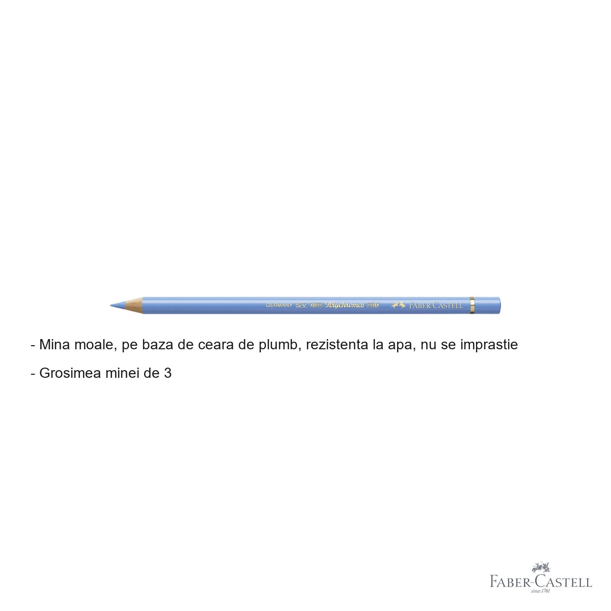 Orice artist stie ca rezultatul final al unei lucrari depinde in mare masura de calitatea instrumentelor folosite. Fie ca esti un artist experimentat, un ilustrator profesionist sau un pasionat de tehnici mixte, alegerea unui creion colorat de calitate superioara face diferenta intre o lucrare mediocra si una cu adevarat remarcabila. Creionul colorat Faber-Castell Polychromos in nuanta Albastru Cer este unul dintre cele mai apreciate instrumente de desen si colorat din lume, oferind performante exceptionale datorita formulei avansate a minei si pigmentilor de prima clasa. Cu o traditie indelungata in productia de instrumente de scris si desen, Faber-Castell garanteaza un standard ridicat al calitatii, iar gama Polychromos reprezinta varful acestei expertize.