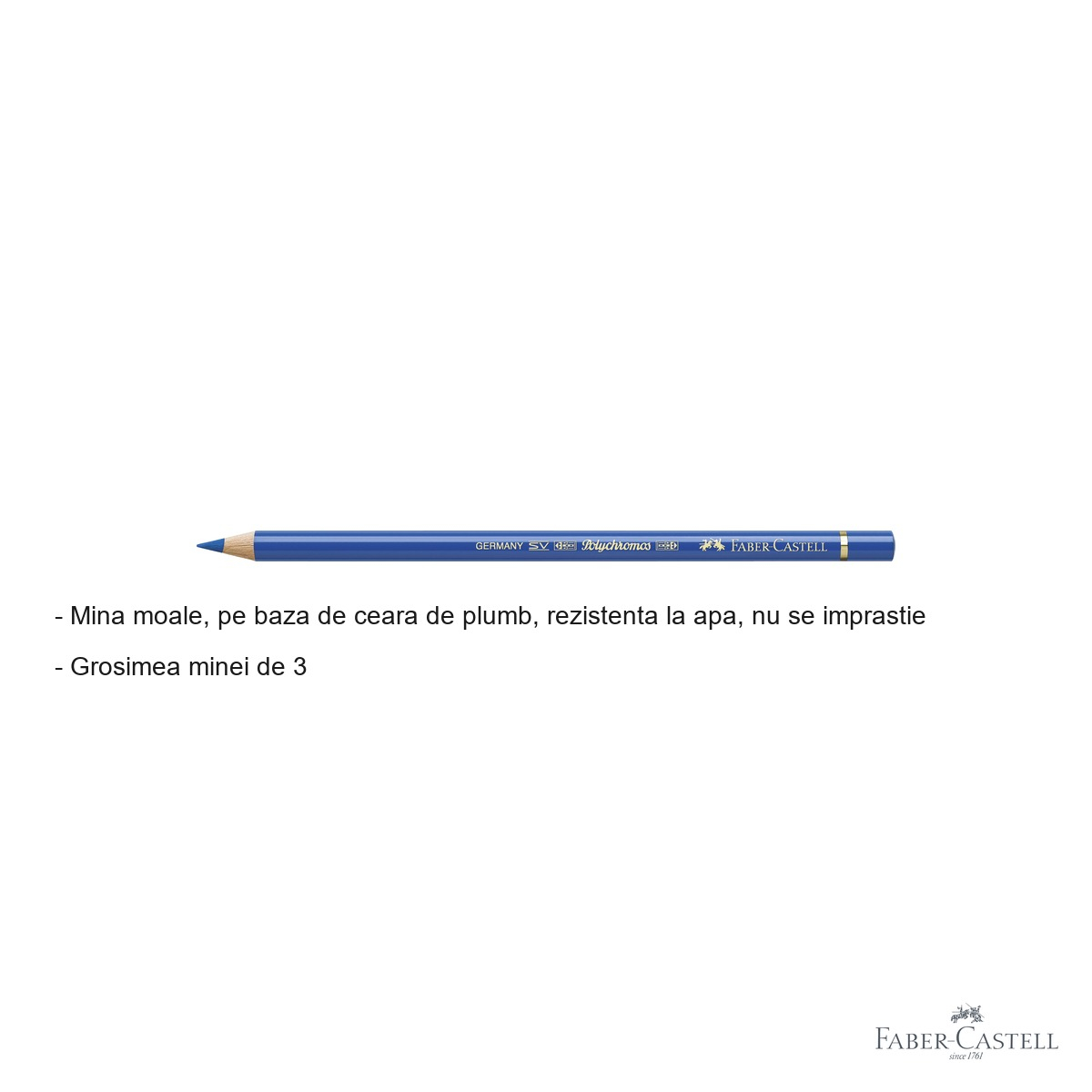 Orice artist, ilustrator sau pasionat de desen stie ca rezultatul final depinde in mod direct de calitatea instrumentelor folosite. Cand lucrezi la un proiect care necesita precizie cromatica, stabilitate a culorii si o aplicare uniforma pe suprafata, ai nevoie de un creion colorat care sa nu te dezamageasca. Creionul colorat Faber-Castell Polychromos in nuanta albastru cobalt-verzui este ales de profesionisti din intreaga lume tocmai pentru ca ofera un standard de calitate superior, vizibil inca din primele trasaturi. Gama Polychromos reprezinta una dintre cele mai apreciate linii de creioane colorate pentru artisti, recunoscuta pentru pigmentii intensi, mina moale si durabilitatea culorii in timp.