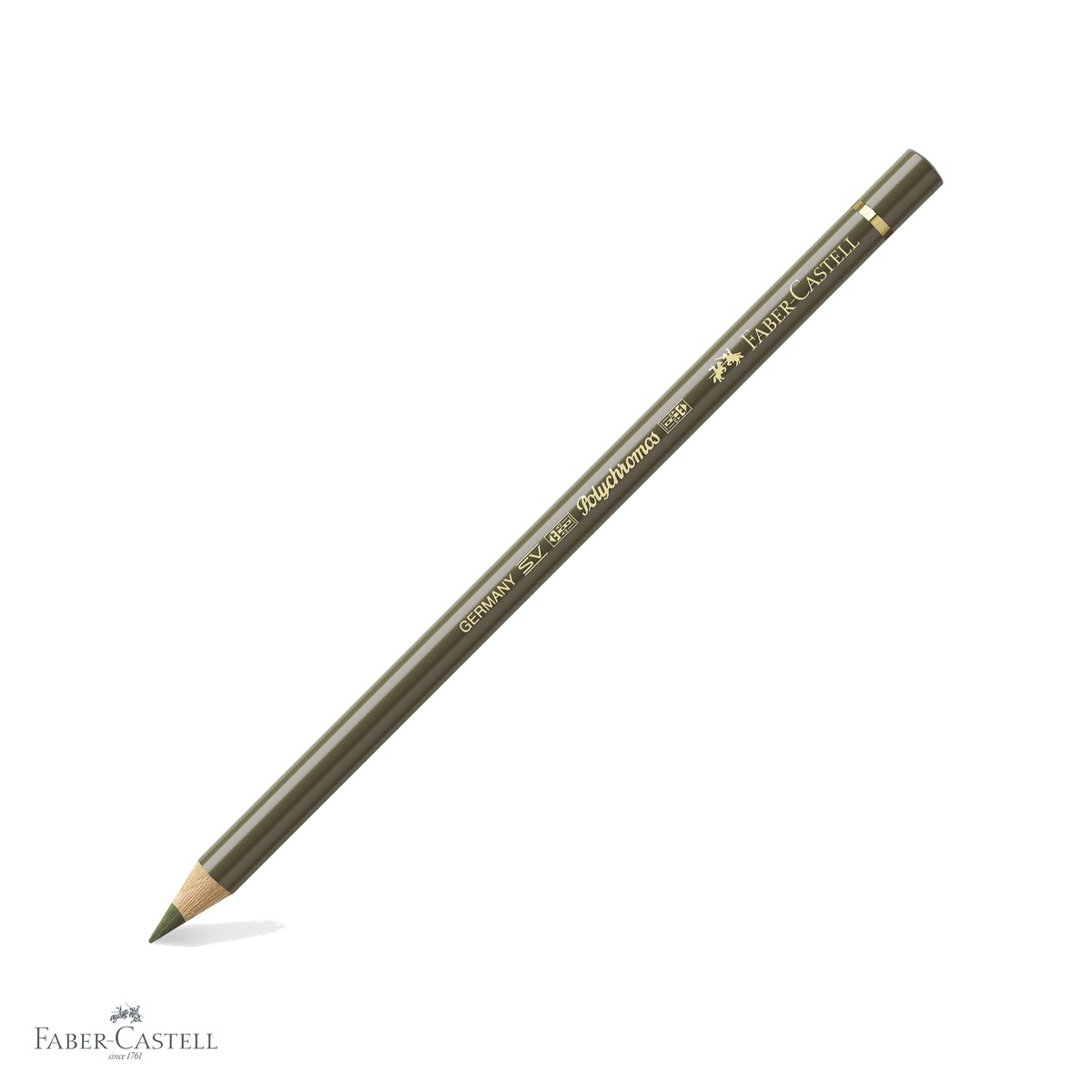 Creion colorat Faber-Castell Polychromos, verde oliv galbui, mina moale pe baza de ceara, pentru desen artistic