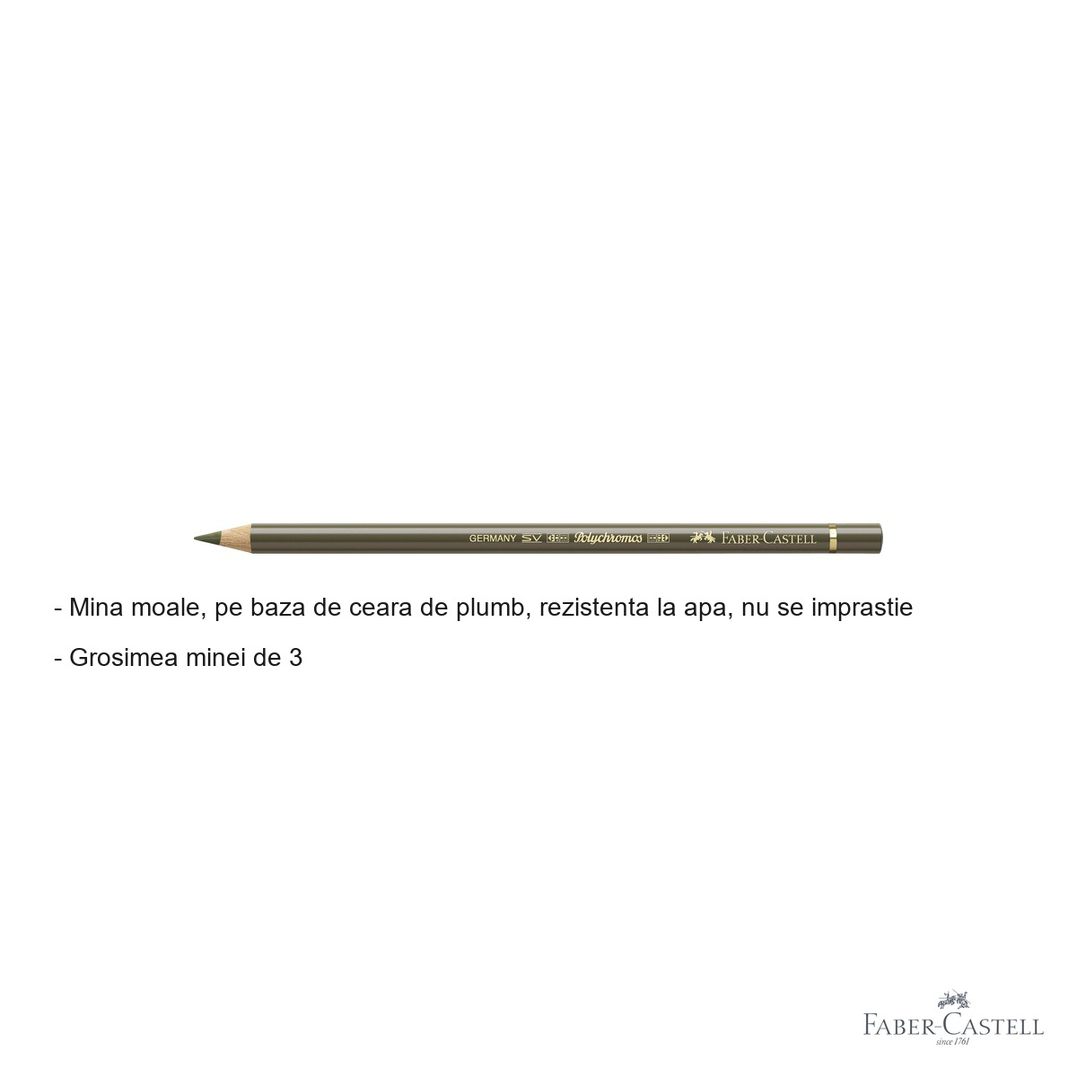 Creion colorat profesional Faber-Castell Polychromos, culoare verde oliv galbui, cu mina moale de 3.8 mm pe baza de ceara de plumb. Pigmenti de inalta calitate pentru culori intense si stabile la lumina. Rezistent la apa, ideal pentru artisti si ilustratori.