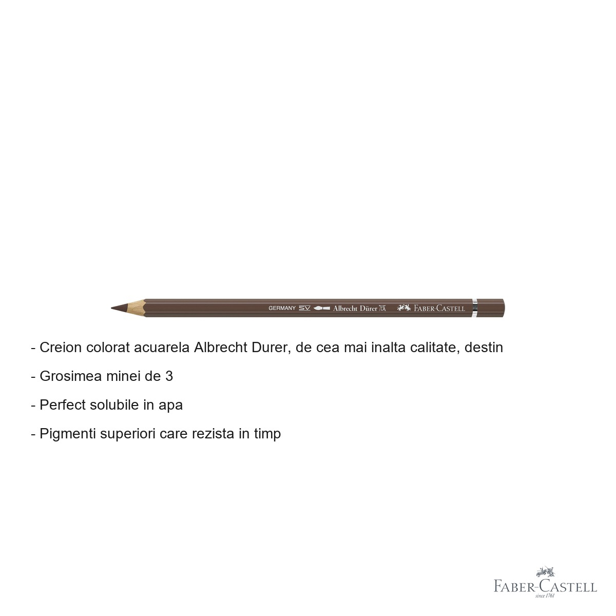 Pentru artistii care cauta excelenta in expresia artistica prin tehnica acuarelei, creioanele colorate Albrecht Durer reprezinta alegerea ideala. Combinand traditia de peste 250 de ani a brandului Faber-Castell cu tehnologii moderne de productie, acest creion colorat ofera posibilitati nelimitate de creatie, permitand tranzitia fluida intre desen uscat si pictura in acuarela.