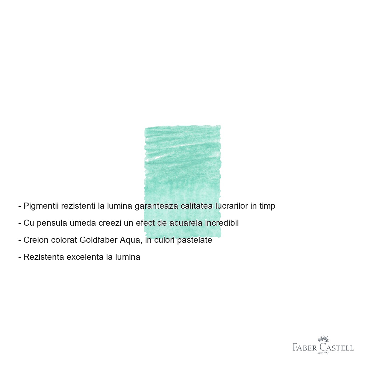 Avantaje si beneficii: Tehnologia inovatoare Goldfaber garanteaza o experienta superioara de desenare. Mina moale permite aplicarea uniforma a culorii, iar pigmentii de inalta calitate asigura intensitate si stralucire deosebite. Procesul special de lipire SV reduce semnificativ riscul de rupere a minei, chiar si la presiune mare sau caderi accidentale. Rezistenta excelenta la lumina pastreaza lucrarile vibrante pentru multi ani.