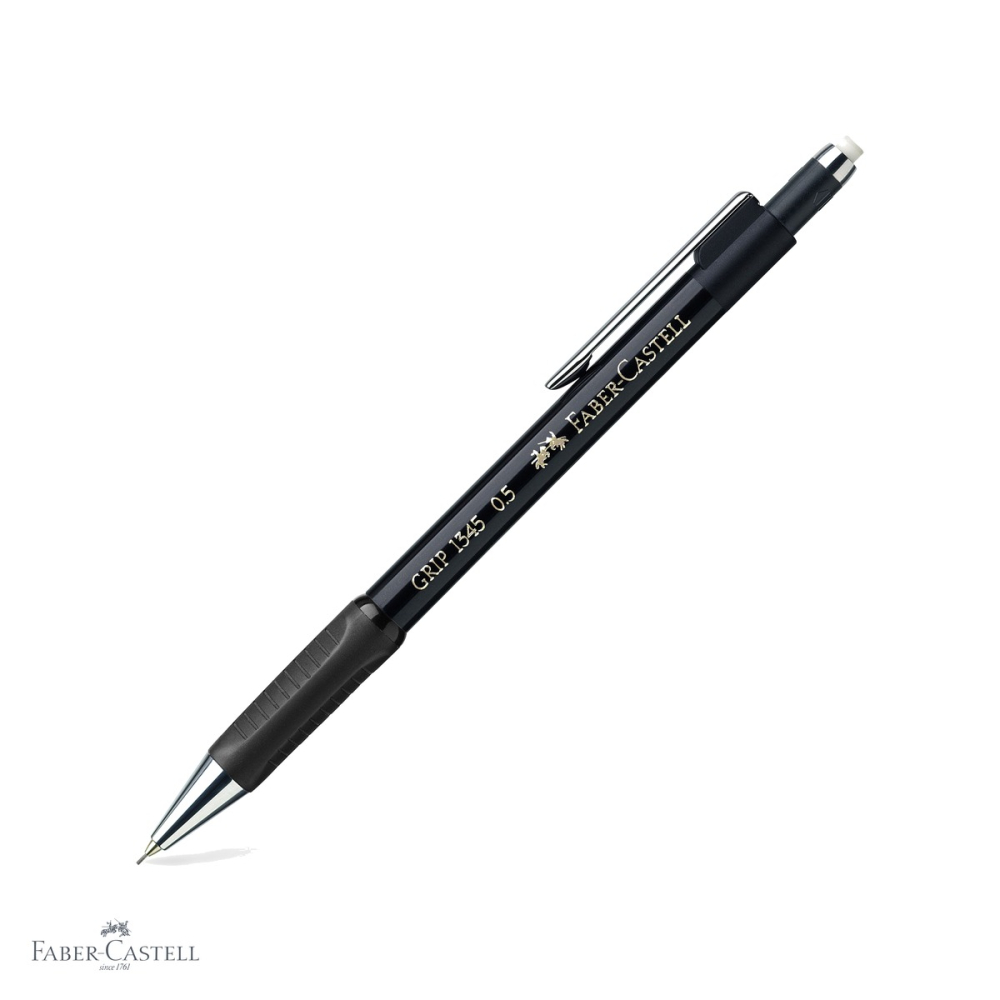 Creion mecanic Faber-Castell Grip 1345 0.5mm negru, radiera retractabila, pentru scris de precizie