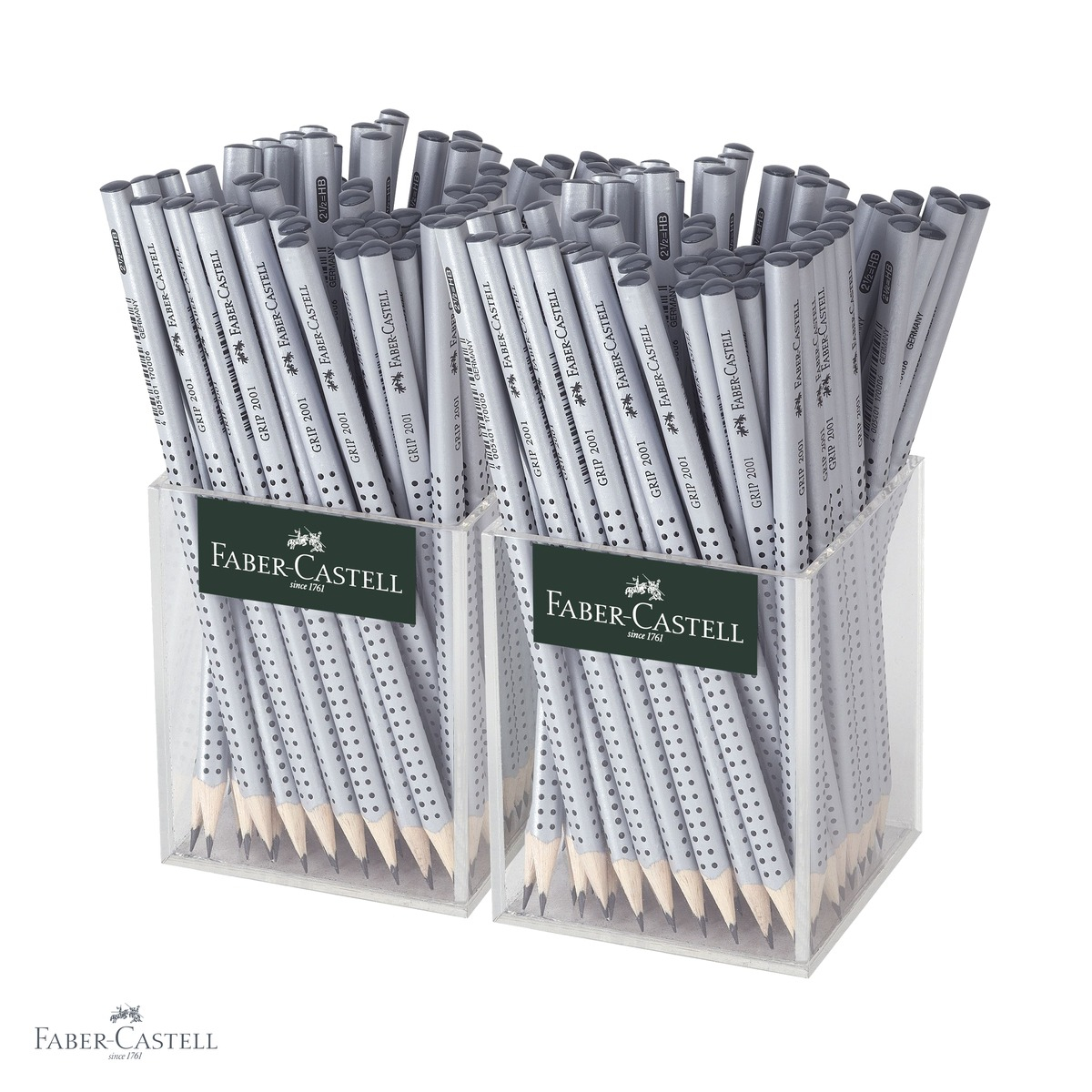 Set de 144 creioane grafit HB Faber-Castell Grip 2001, cu zona anti-alunecare patentata si forma triunghiulara ergonomica. Mina rezistenta la rupere, vopsea pe baza de apa. Ideal pentru scoala, birou si uz profesional.