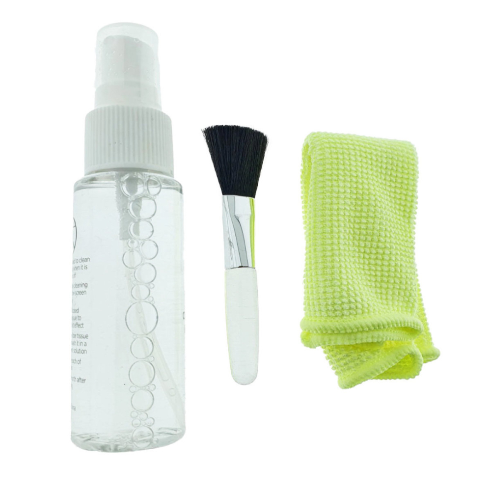 • Spray curatator cu formula sigura: Lichidul de curatare de 30 ml este formulat special pentru ecrane, fara alcool si fara amoniac, substante care pot dauna straturilor anti-reflex sau oleofobe. Compozitia sa este bazata pe apa (95%), completata cu agent tensioactiv (4%) pentru a elimina murdaria si esenta aromatica (1%). Flaconul, cu dimensiunile de 102 x 29 x 29 mm si o greutate de 48.5 g (plin), este usor de manipulat.