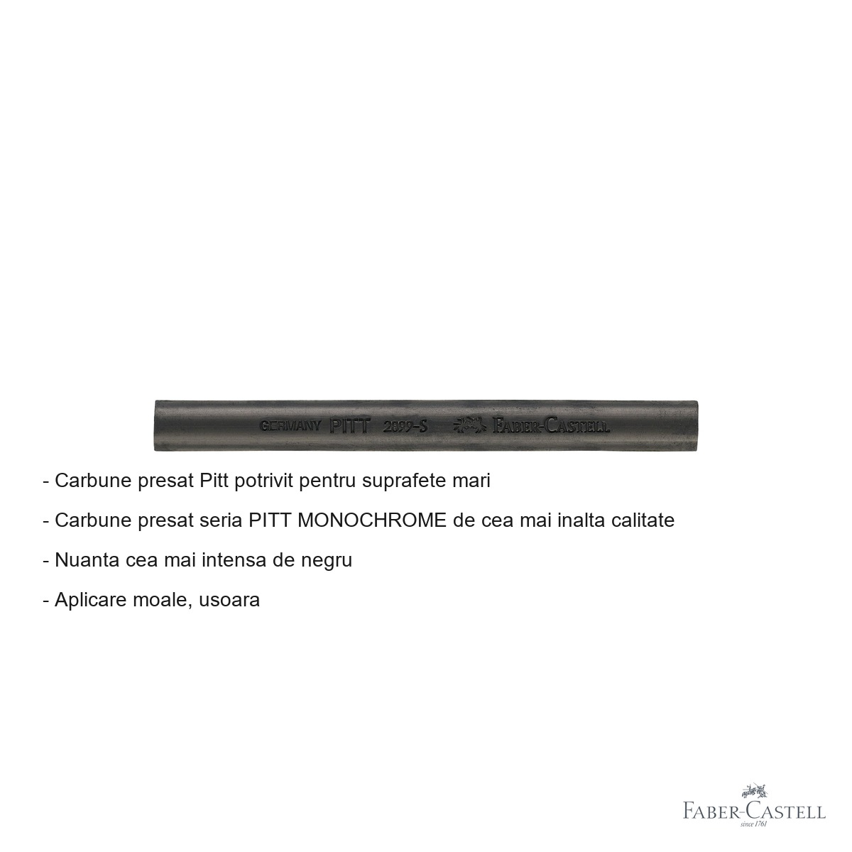 Daca esti artist, ilustrator sau student la arte vizuale si cauti un instrument de desen care sa-ti ofere negru profund, expresiv si o aplicare fina pe suprafete mari, carbunele presat Pitt Monochrome Soft de la Faber-Castell este alegerea potrivita. Seria Pitt Monochrome reprezinta standardul de calitate in domeniul desenului cu carbune, fiind utilizata de profesionisti din intreaga lume pentru rezultate artistice remarcabile.