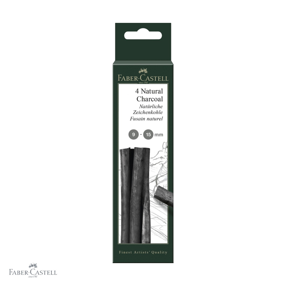 Set 4 batoane carbune natural Faber-Castell Pitt Monochrome, diametru 9-15 mm, pentru desen artistic