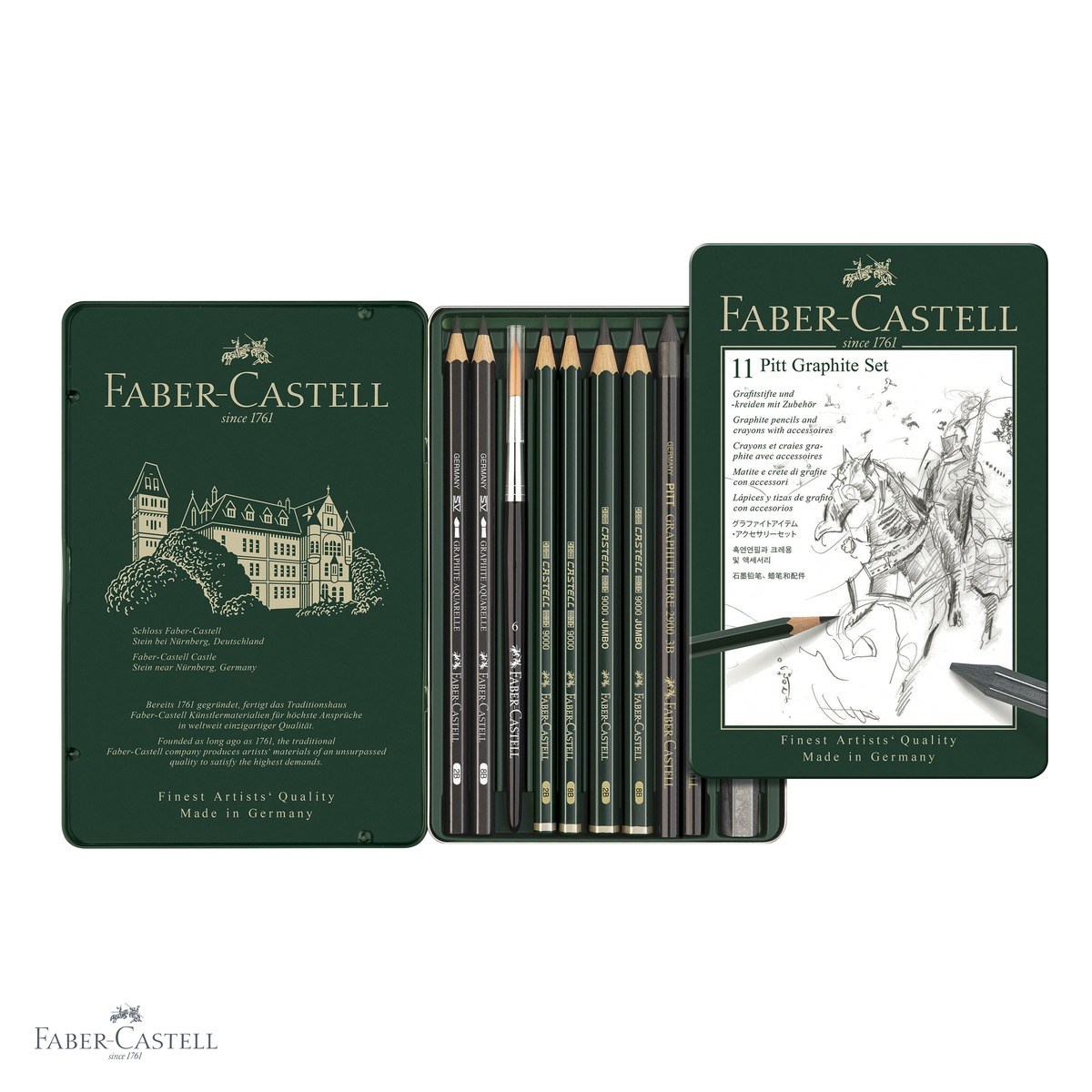 Faber-Castell este un brand cu o traditie de peste 260 de ani in productia de instrumente de scris si desen. Creionul verde emblematic Faber a fost mentionat chiar de personalitati precum Van Gogh si Goethe, devenind in timp un simbol al calitatii si al creativitatii. Aceasta mostenire se regaseste in fiecare instrument din setul Pitt Monochrome Grafit, oferind artistilor de azi aceeasi fiabilitate si performanta pentru care brandul este recunoscut la nivel mondial.