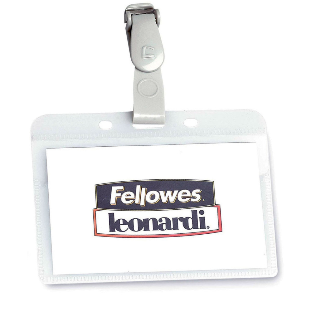 Ecuson Orizontal Transparent PVC Crystal cu Clip Plastic pentru Badge-uri, 99x73mm, Model Fellowes 453TR