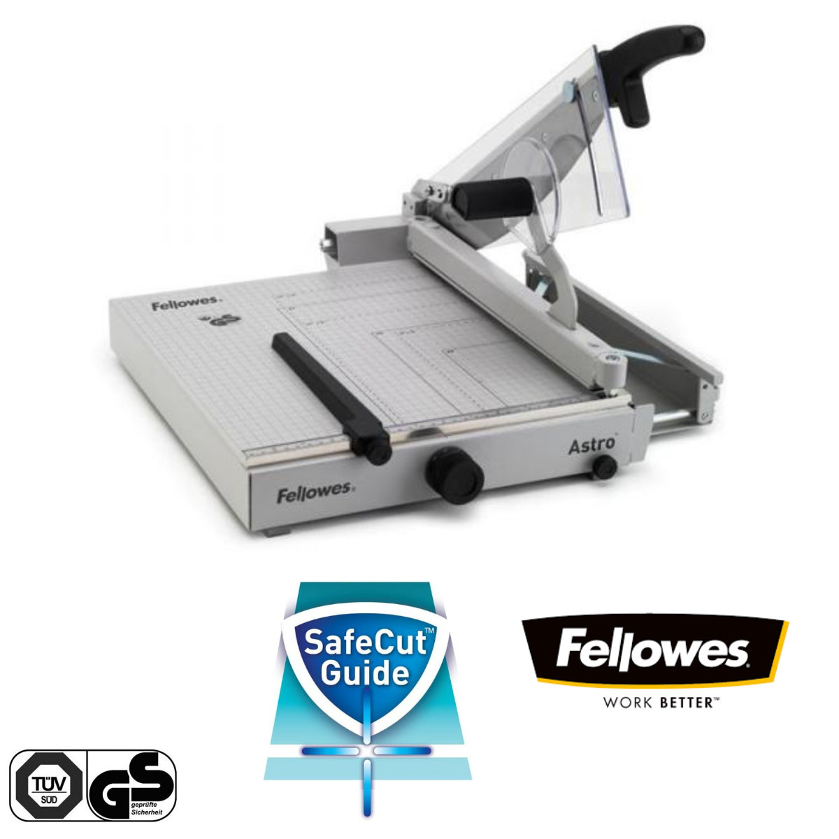 Suporta hartie de pana la format A4 (210 x 297 mm), iar lungimea maxima de taiere este de 385 mm, permitand si foi putin mai late.
