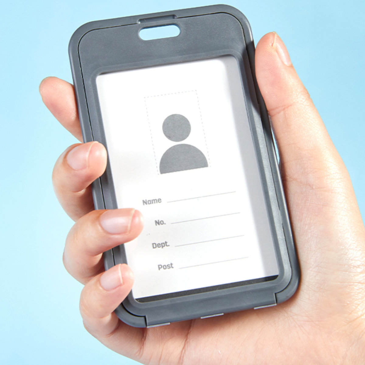 Corporate cu Badge-uri Verticale Pentru companiile care au ales un design vertical pentru badge-urile angajatilor si doresc o solutie pentru a adauga un card suplimentar.