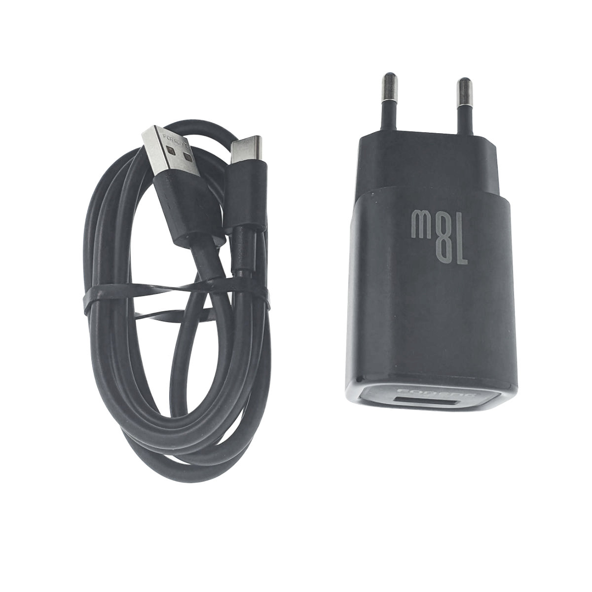 Setul include un incarcator USB rapid Foneng model EU68 cu conector de priza europeana si un cablu USB-A la USB-C. Incarcatorul este un dispozitiv compact si usor, cu o iesire USB-A care suporta tehnologia Quick Charge 3.0 pentru o putere de pana la 18W.