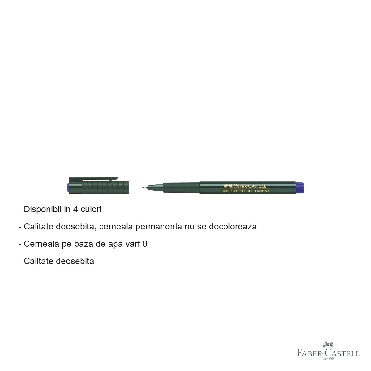 Liner-ul Faber-Castell Finepen 1511 se remarca printr-o serie de avantaje care il pozitioneaza ca o alegere inteligenta pentru utilizatorii pretentiosi. Cerneala permanenta pe baza de apa asigura trasaje durabile, care nu pales in timp, pastrandu-si intensitatea culorii chiar si dupa mai multi ani. Varful metalic de 0.4 mm ofera o rezistenta superioara la uzura fata de varfurile din fibra sau plastic, garantand o linie constanta pe toata durata de viata a produsului. Calitatea deosebita a acestui instrument este sustinuta de renumele international al brandului Faber-Castell, un producator cu o traditie indelungata in industria instrumentelor de scris. In plus, disponibilitatea gamei Finepen 1511 in 4 culori permite utilizatorilor sa organizeze si sa codifice informatiile prin culoare, crescand eficienta si claritatea lucrarilor.